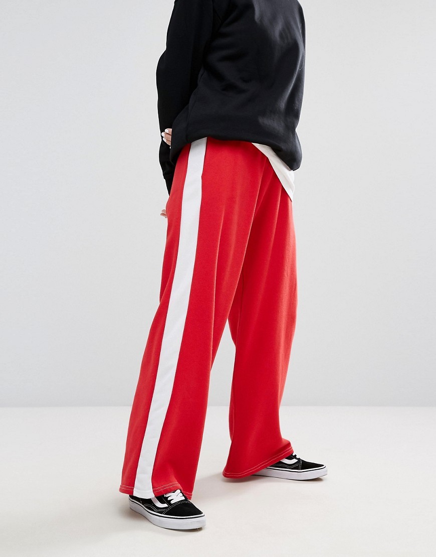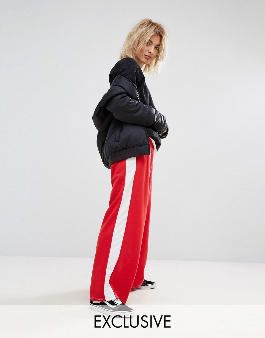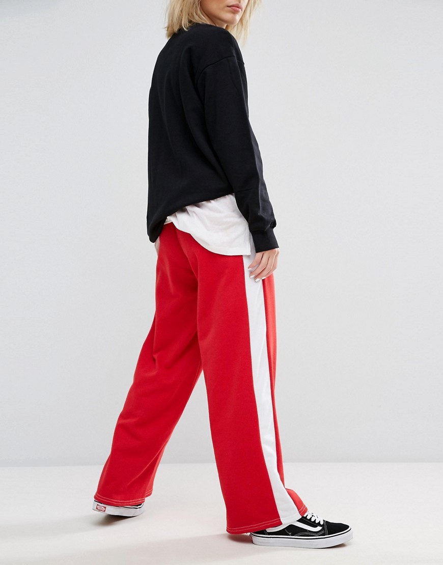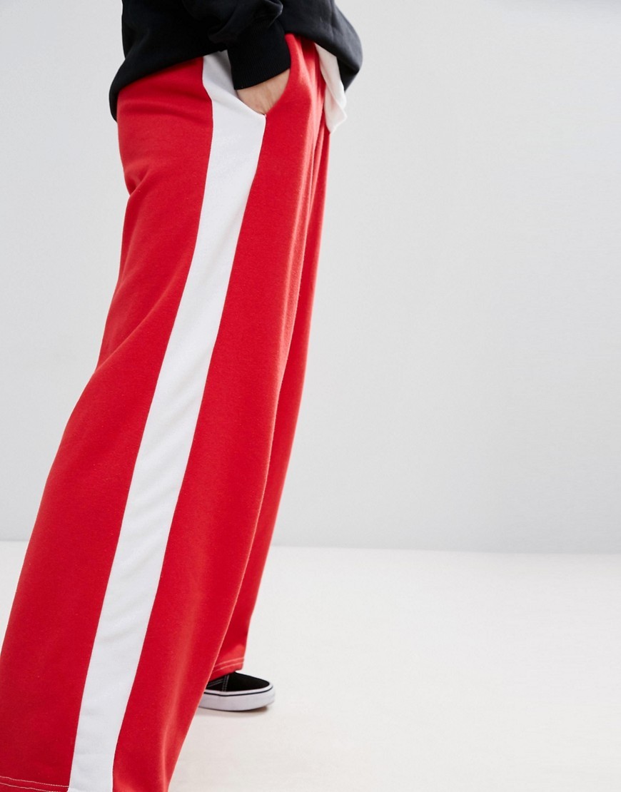 Petite Czerwone spodnie joggery biały lampas defekt S 36
