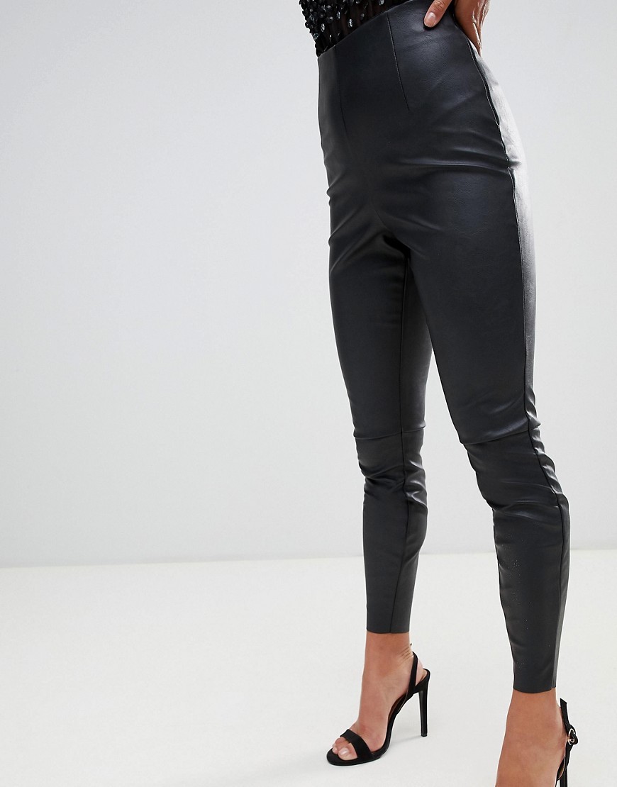 Petite Spodnie dla niskich kobiet czarne sztuczna skóra XL 42