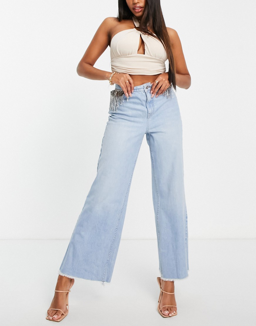 Piaskowa bluzka kopertowa z dekoltem halter defekt 36