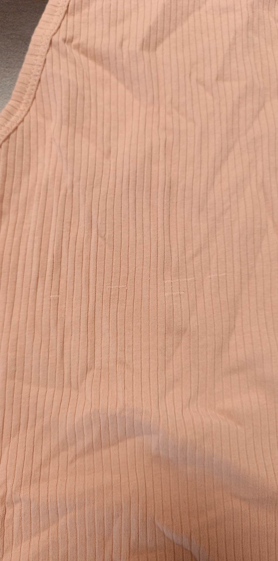 • defekt  skaza materiału na plecach w różowym topie