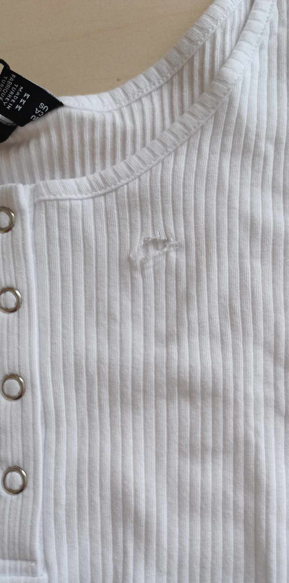 - defekt dziura z pzodu na wysokości zapięcia