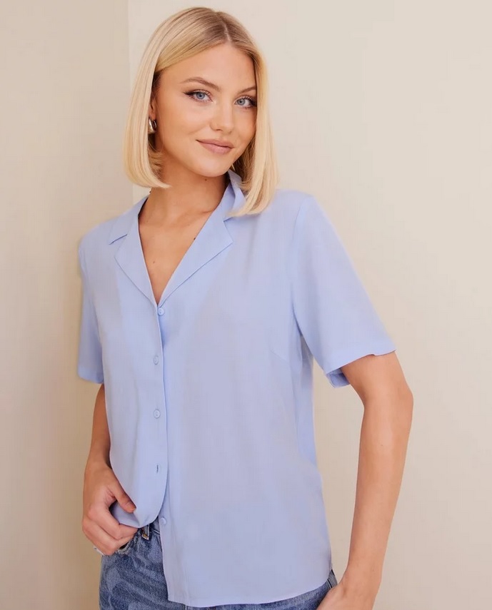 Pieces niebieska koszula z krótkim rękawem L