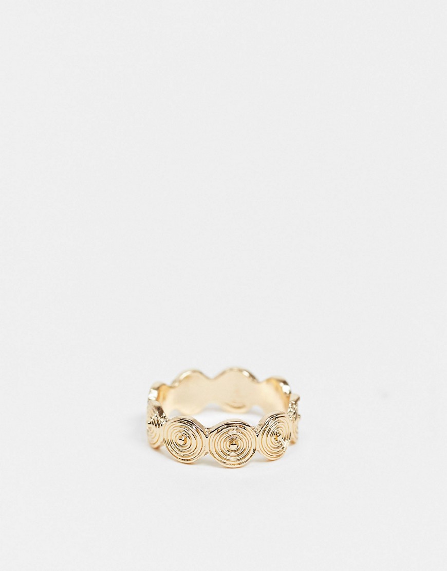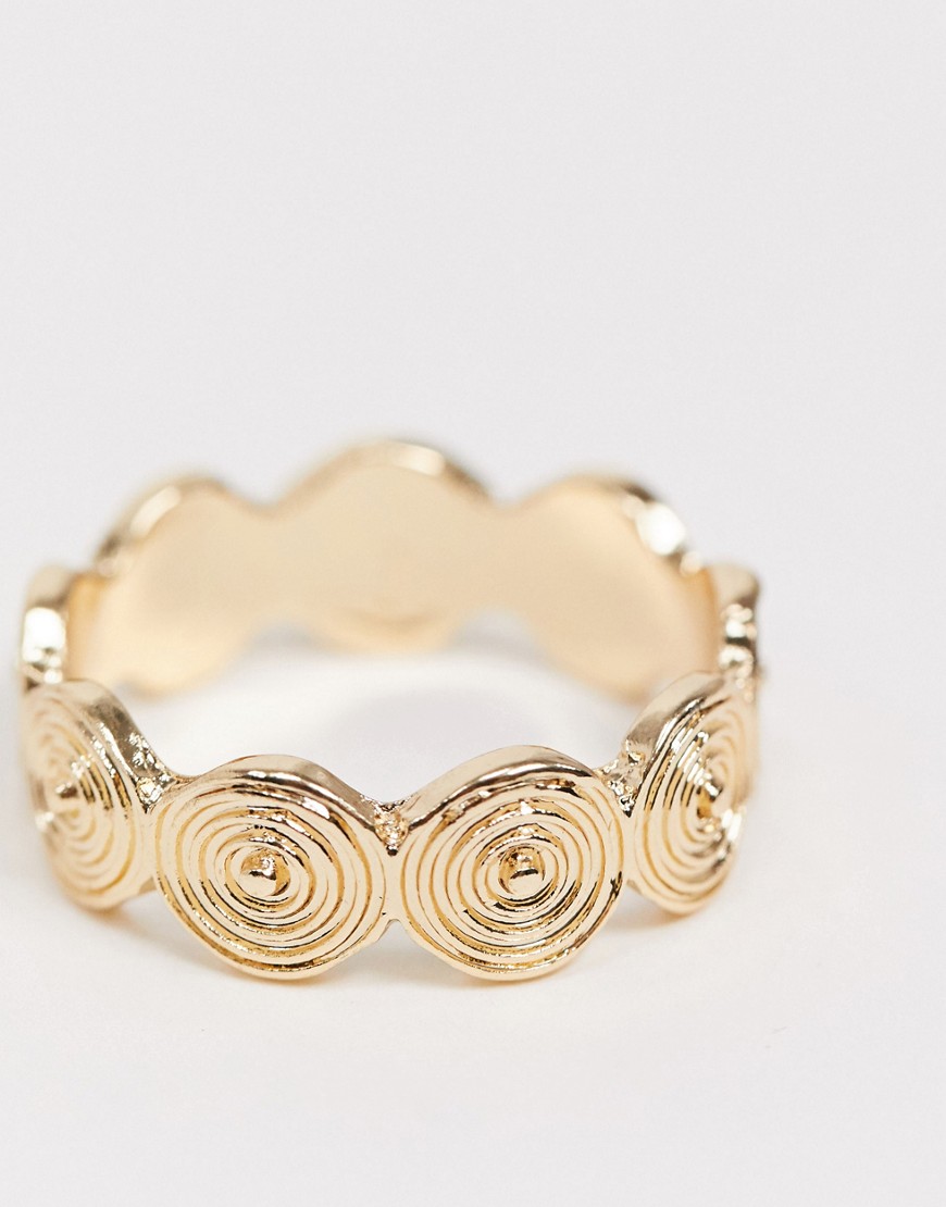 Pierścionek w złotym odcieniu z ozdobnym kółkiem S