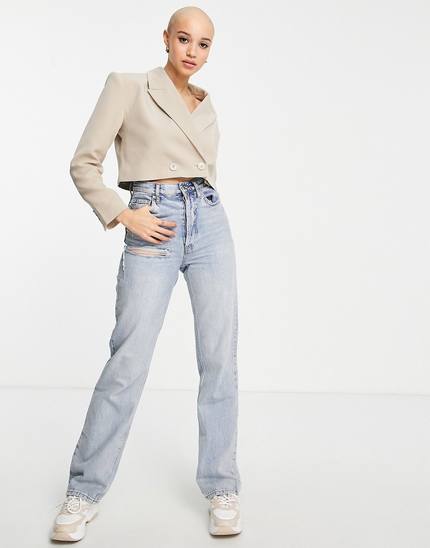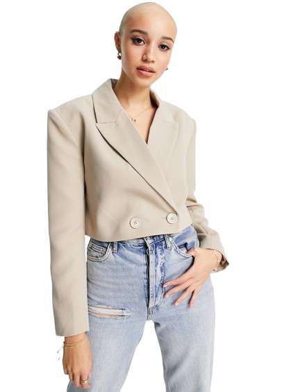 Pimkie Beżowa marynarka dwurzędowa o krótkim fasonie L