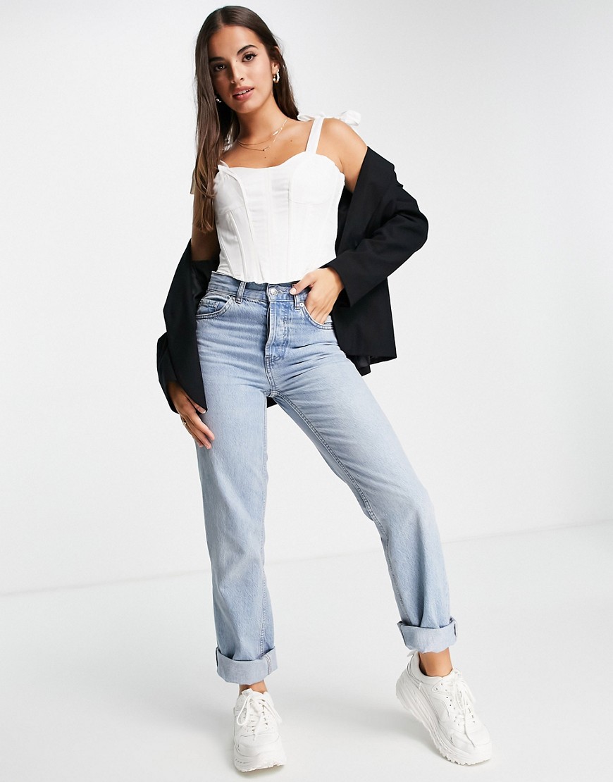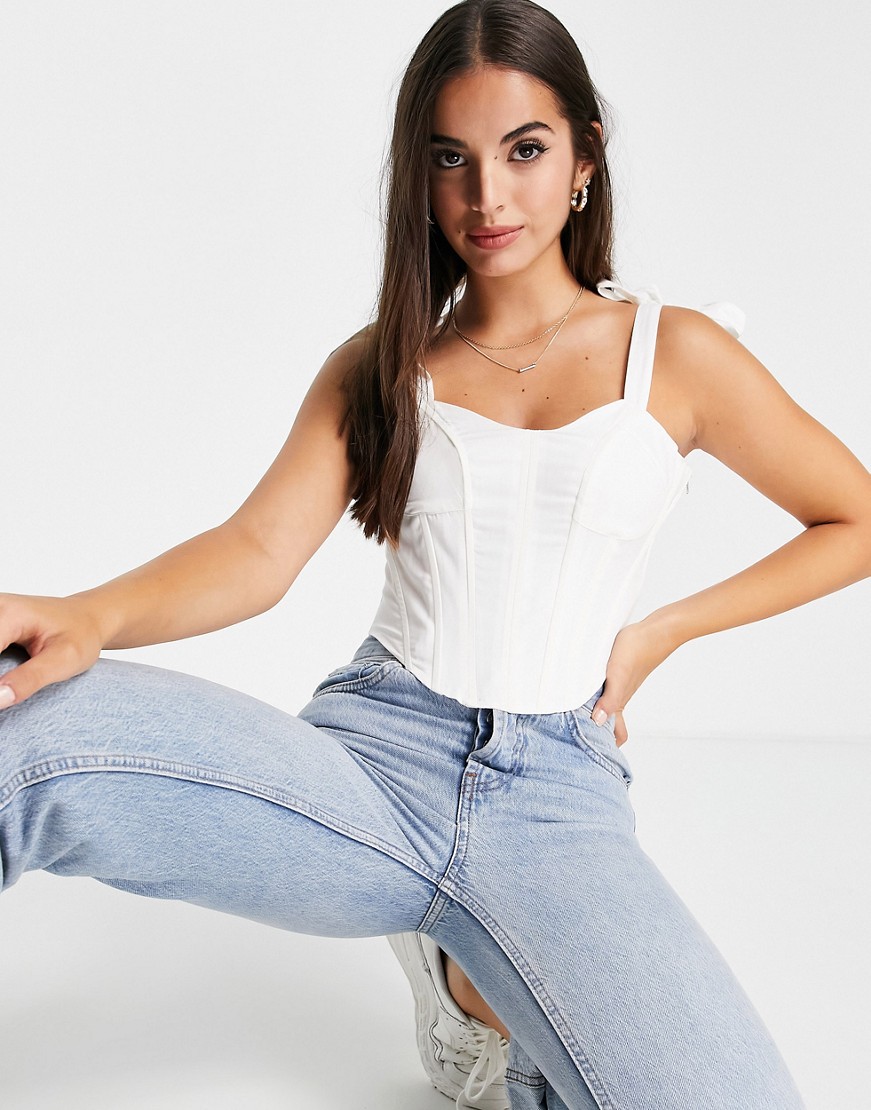 Pimkie biały top gorsetowy z wiązanymi ramiączkami 38