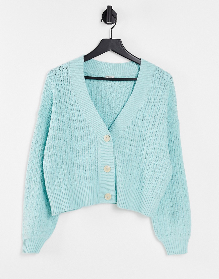 Pimkie niebieski kardigan z dzianiny o warkoczowym splocie używany XS