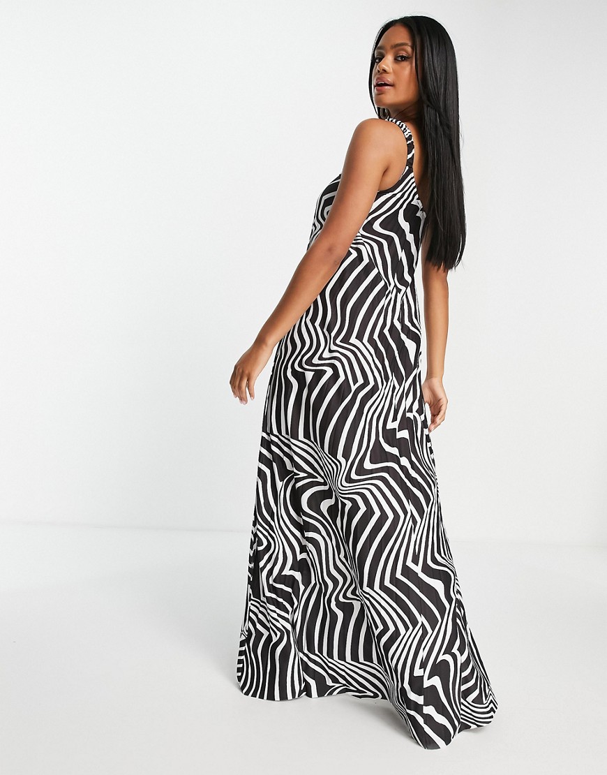 Plisowana sukienka maxi na jedno ramię wzór pasy zebry 40