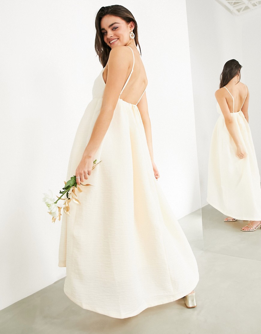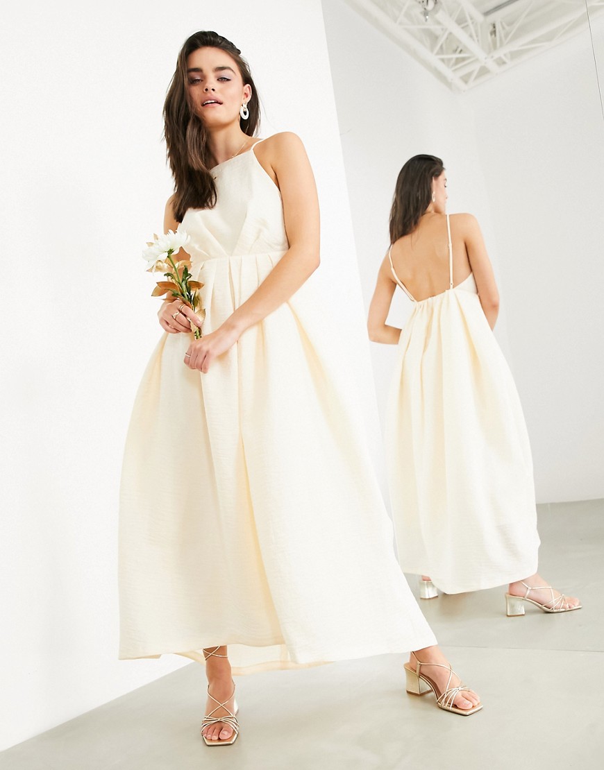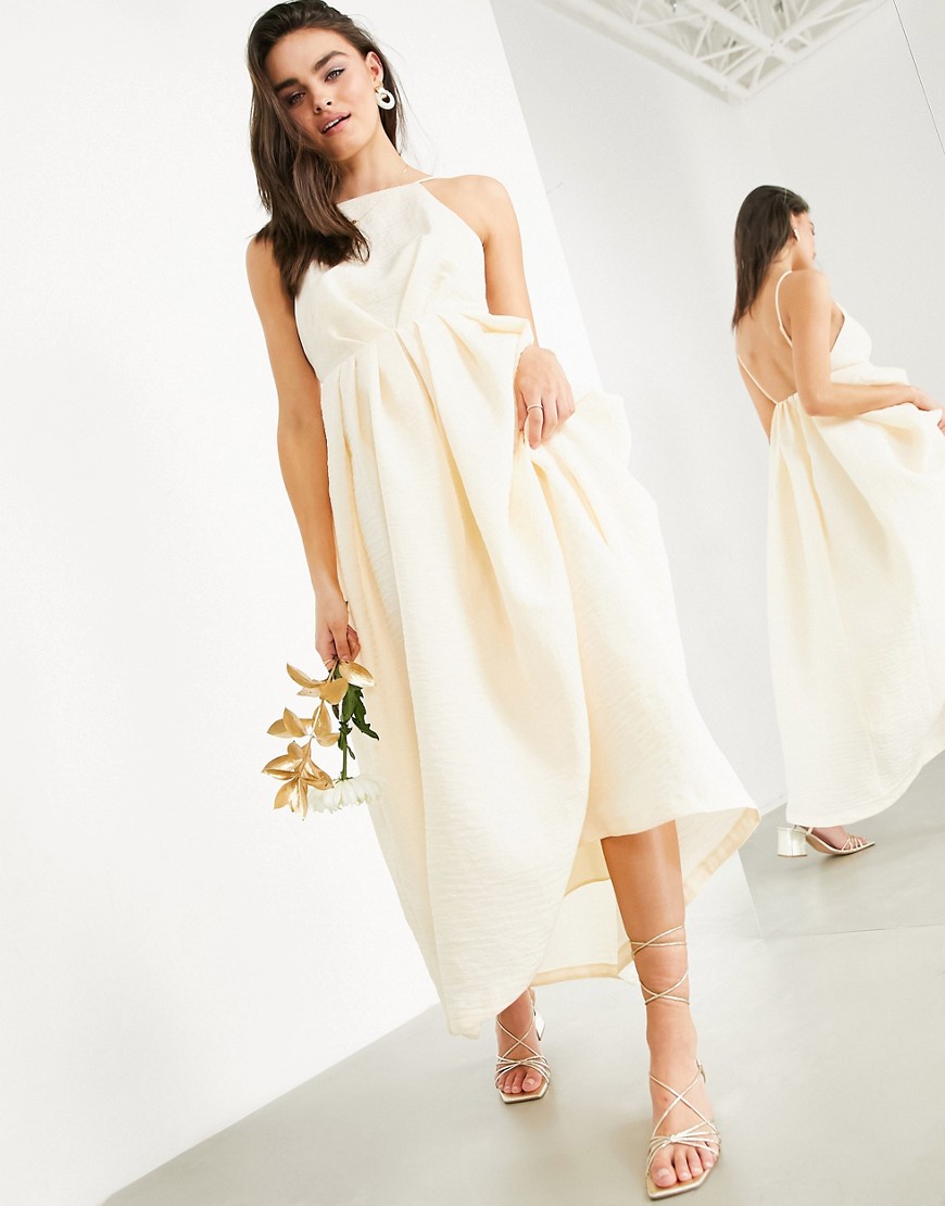 Plisowana suknia ślubna z dekoltem typu halter kremowa defekt 44