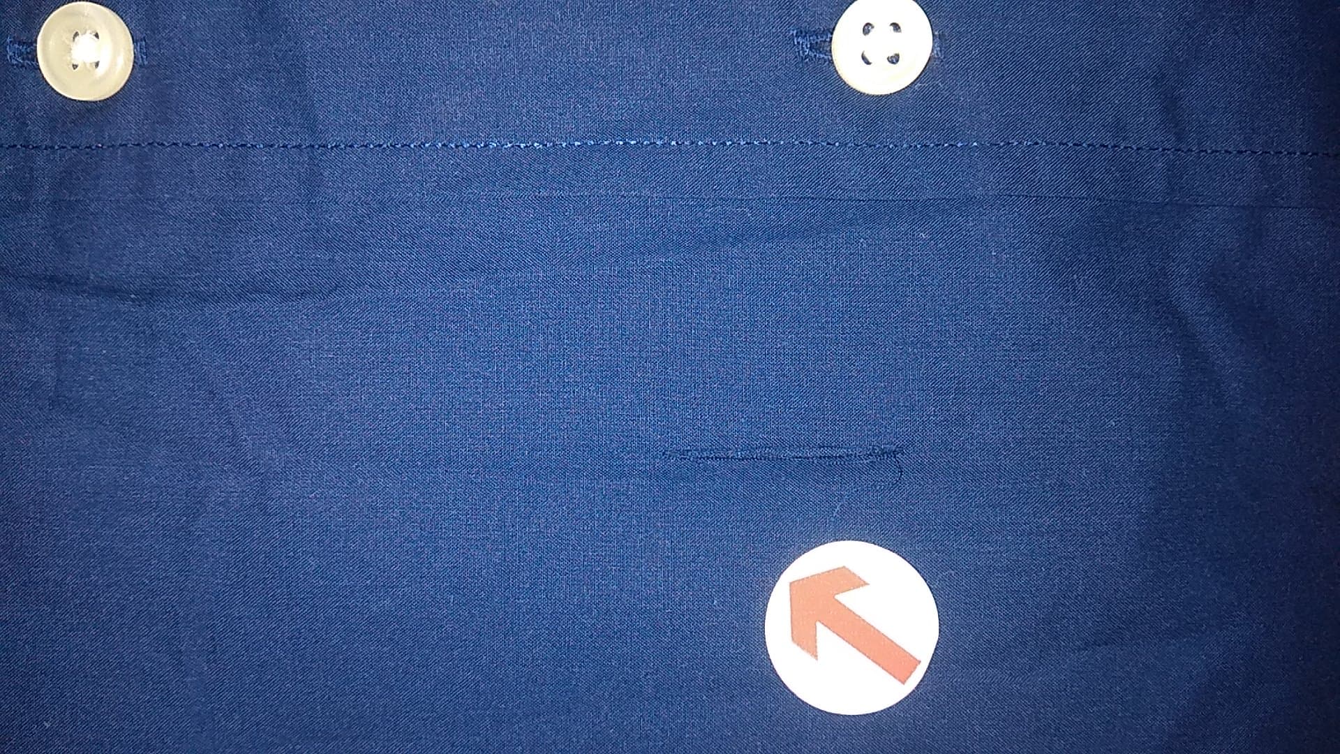 • Defekt: przecięta z przodu przy trzecim guziku od dołu w pionie (zdjęcie)