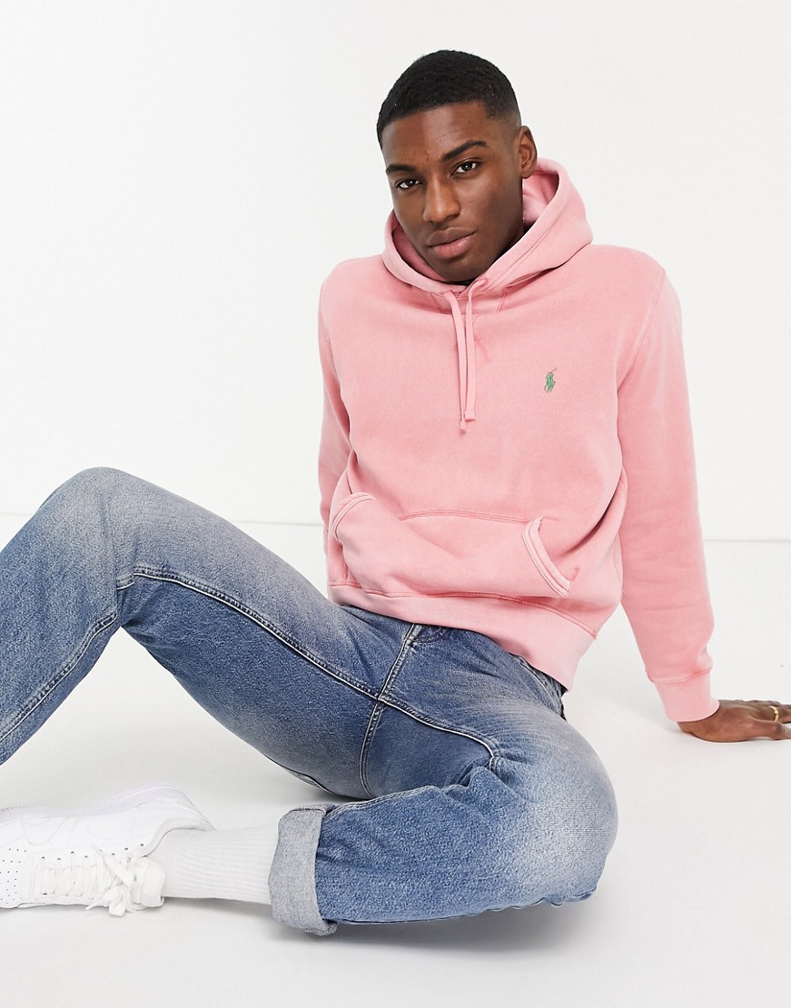 Polo Ralph Lauren męska różowa bluza dresowa z kapturem haftowane logo M