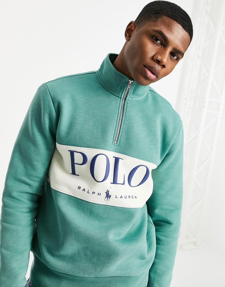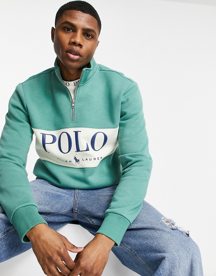 Polo Ralph Lauren zielona bluza z zamkiem pod szyją i logo na piersi L