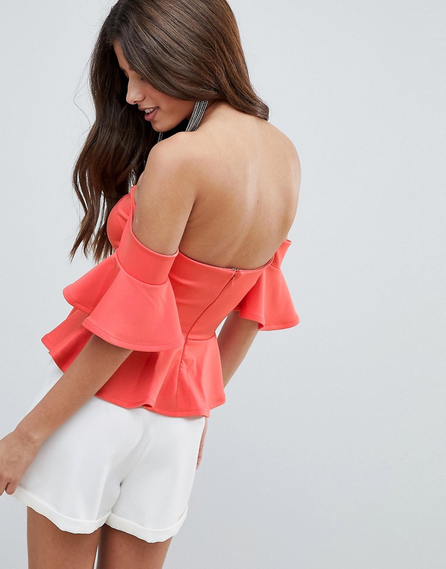 Pomarańczowa bluzka bardot falbanki 38