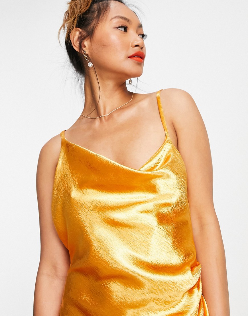 Pomarańczowa drapowana sukienka mini bieliźniana 38