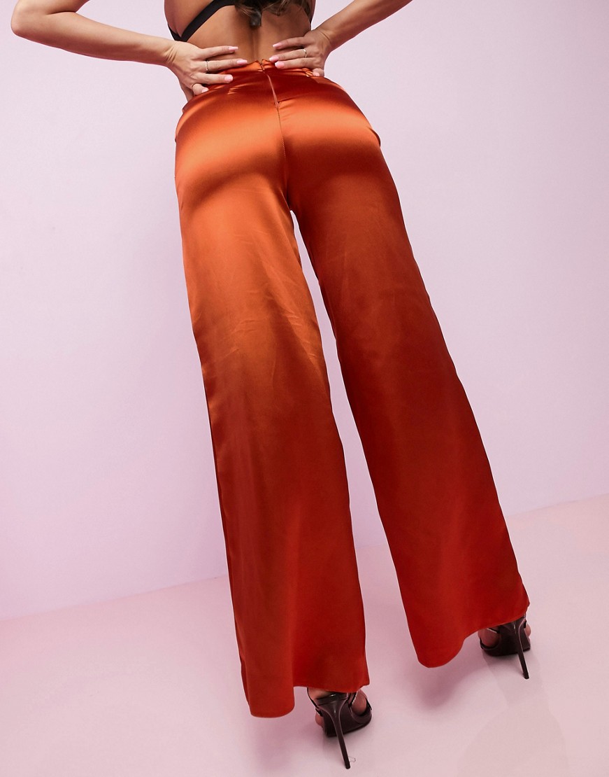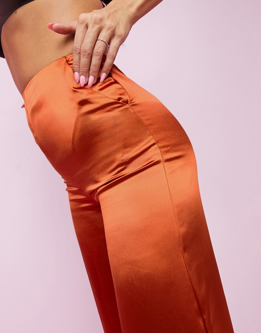 Pomarańczowe spodnie z szerokimi nogawkami z satyny defekt L