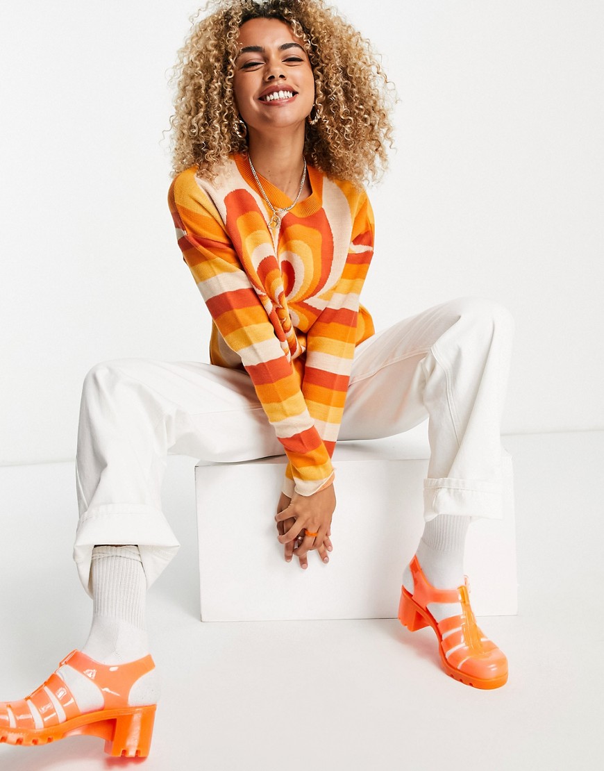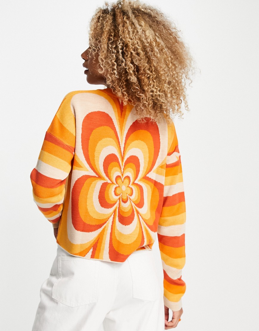 Pomarańczowy sweter w stylu lat 70 z motywem kwiatowym 34