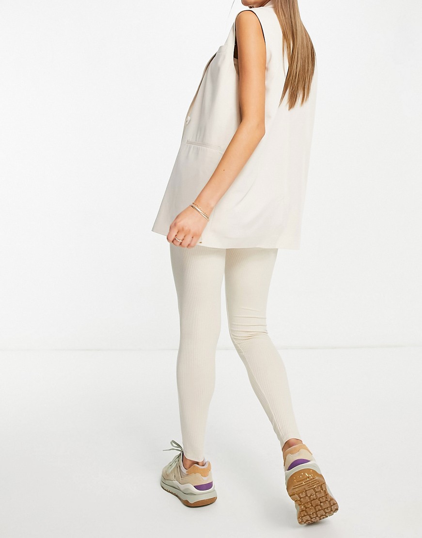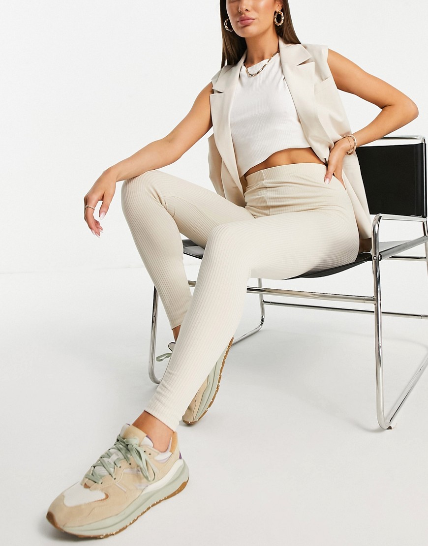 Prążkowane legginsy beżowe 38