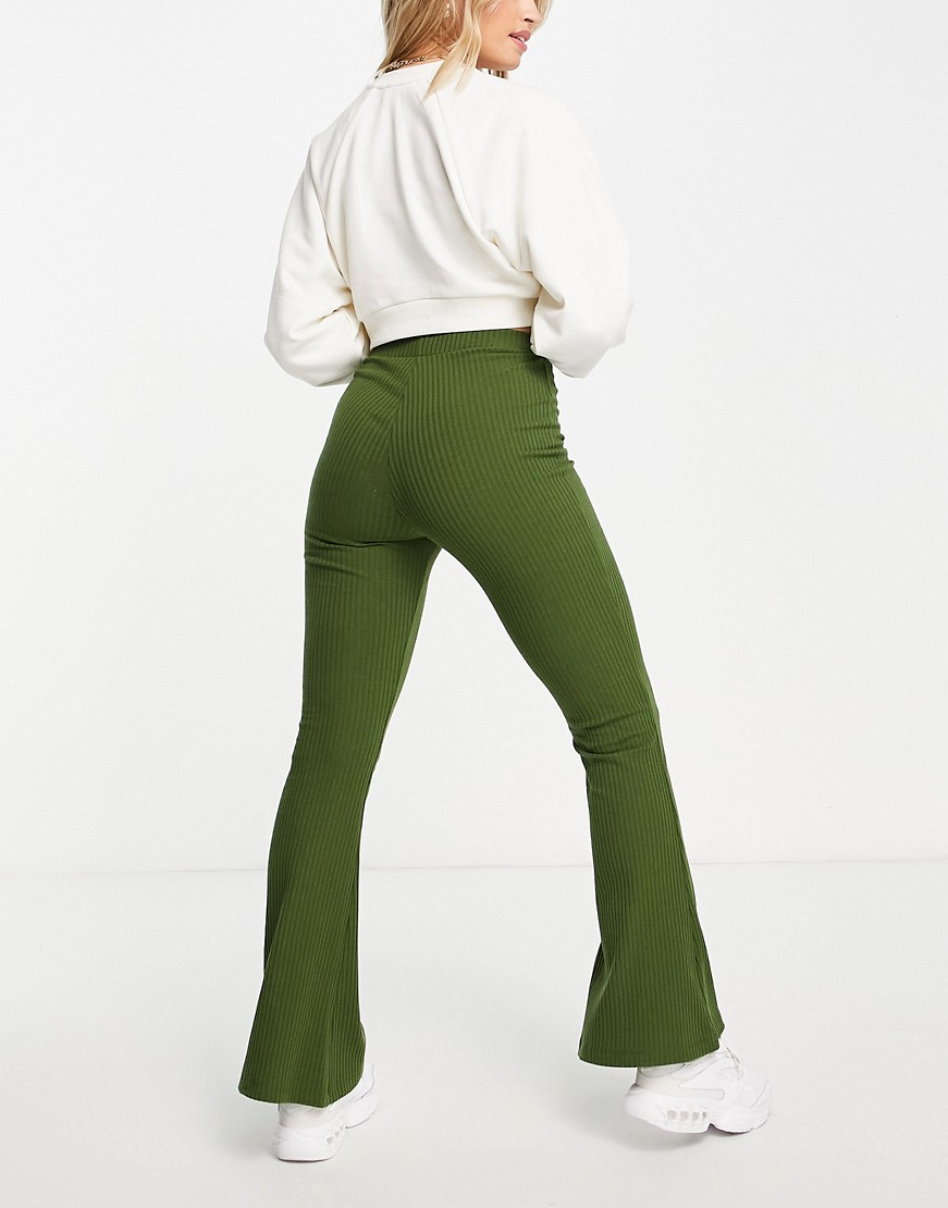 Prążkowane spodnie dzwony w kolorze khaki 38