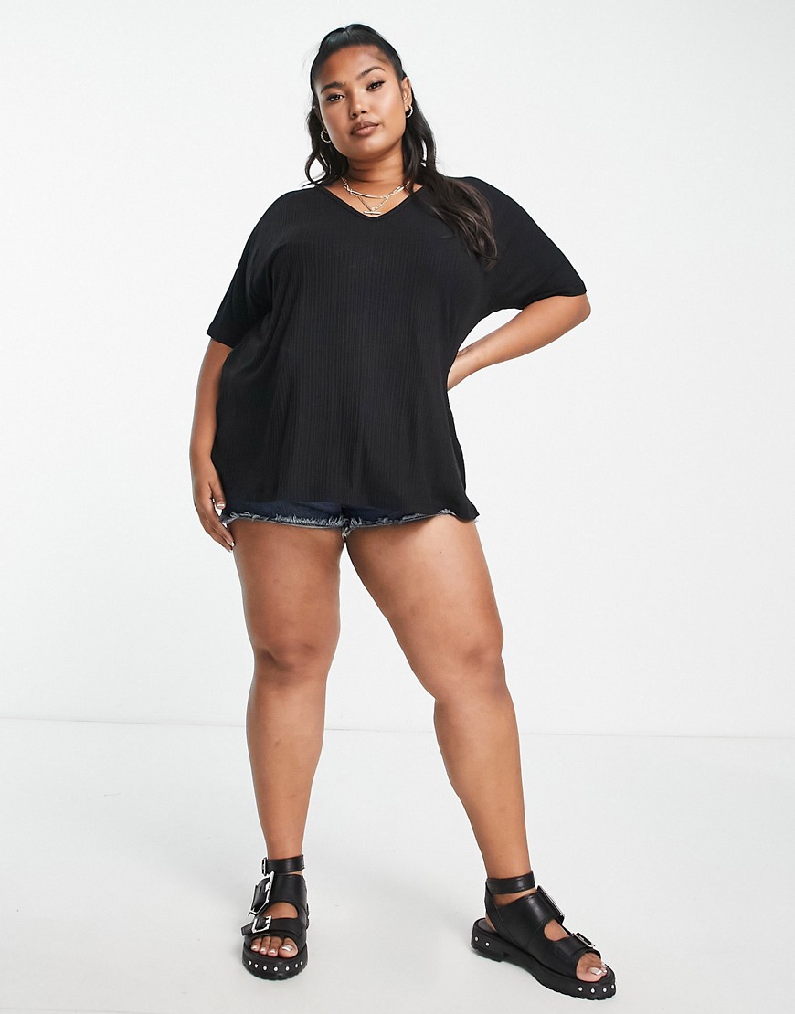 Prążkowany T-shirt oversize w kolorze czarnym defekt 44