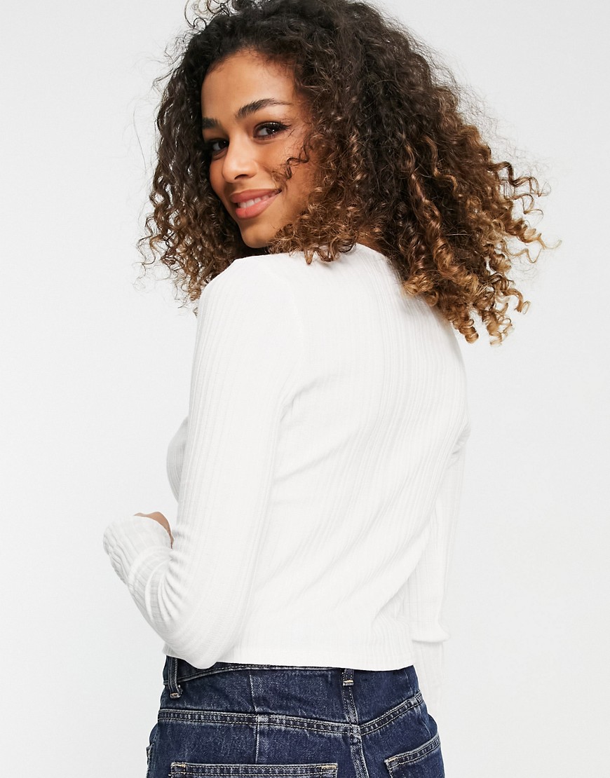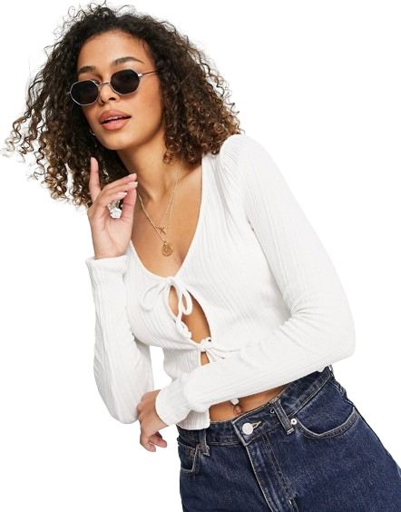 Prążkowany top z długim rękawem i wiązaniem z przodu 38