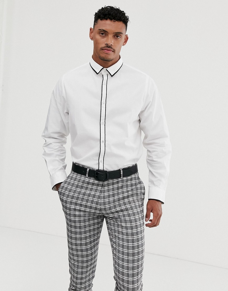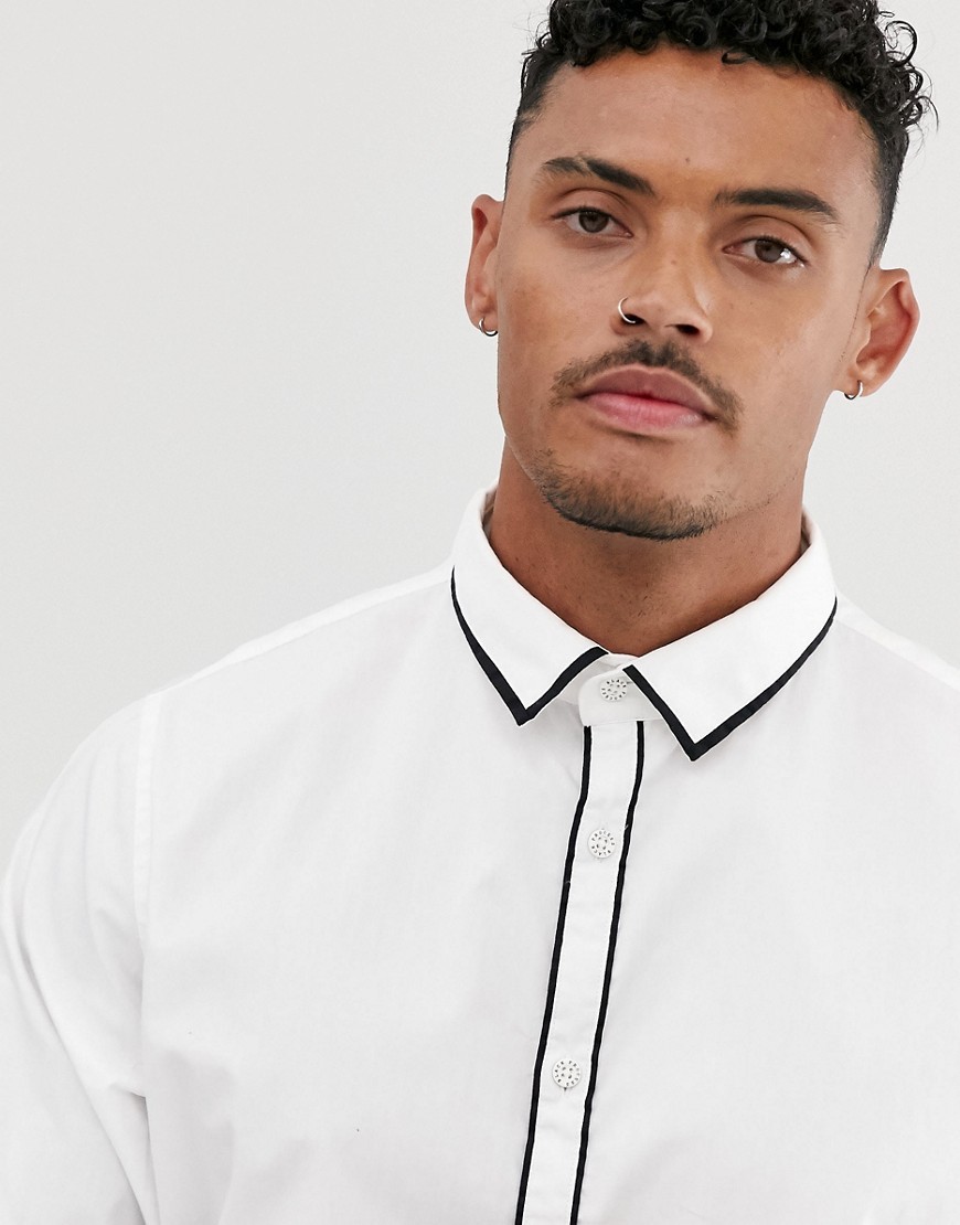 Process Black biała Koszula męska z czarną lamówką M 39 40