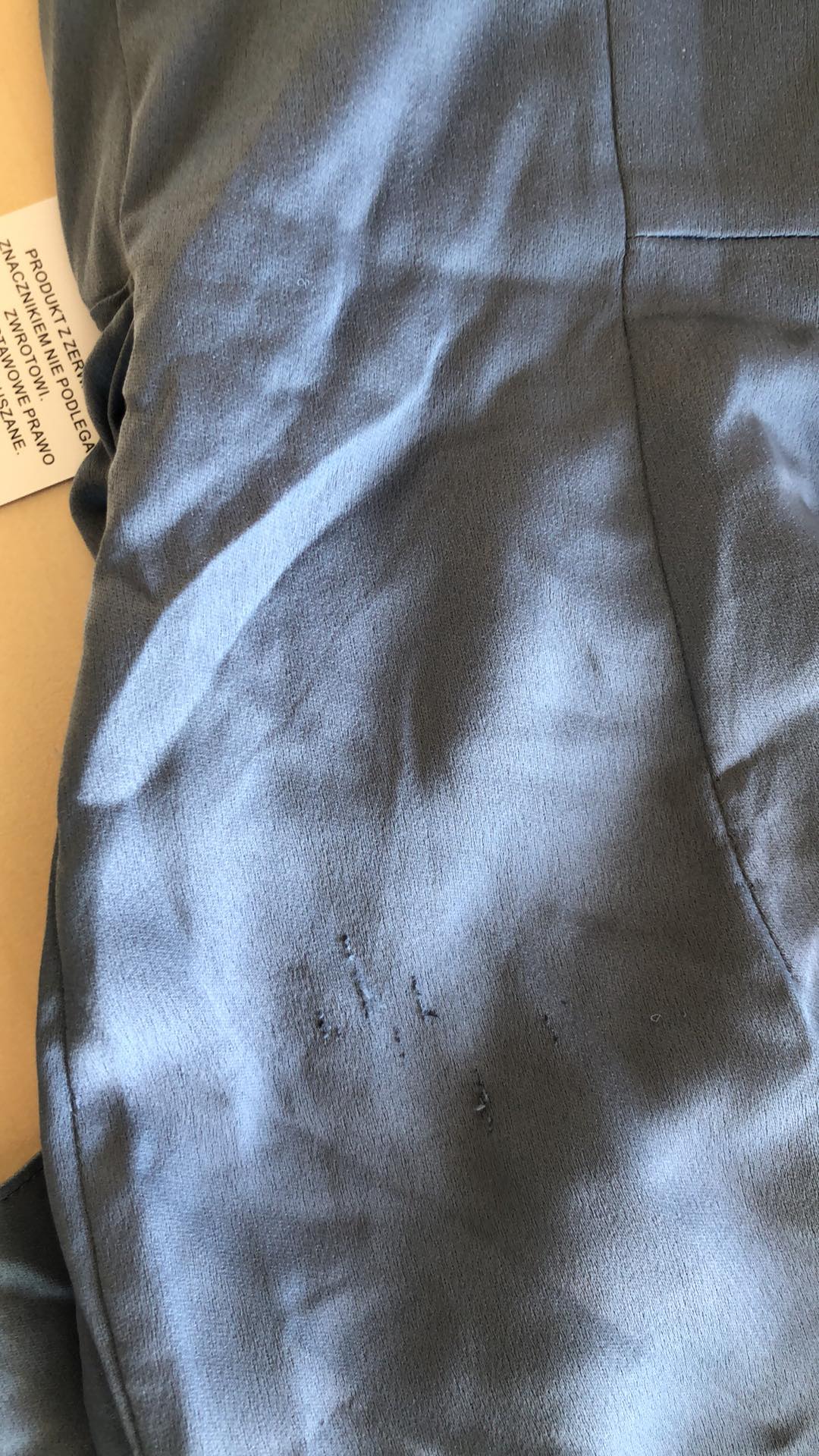 - Defekt: zaciągnięcia materiału i zmechacenie: bok okolice talii, przód okolice talii, wycięcia na noge, mała dziurka przód talia, zaciągnięcie drugi bok