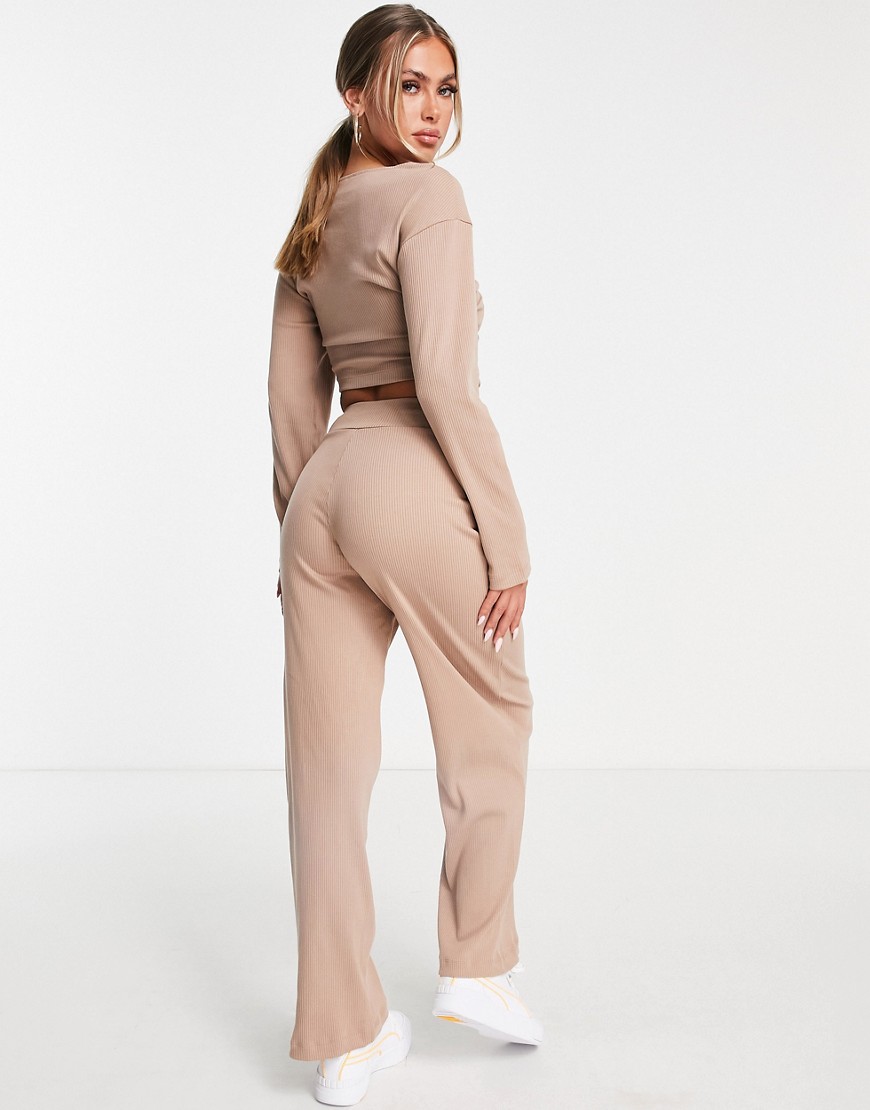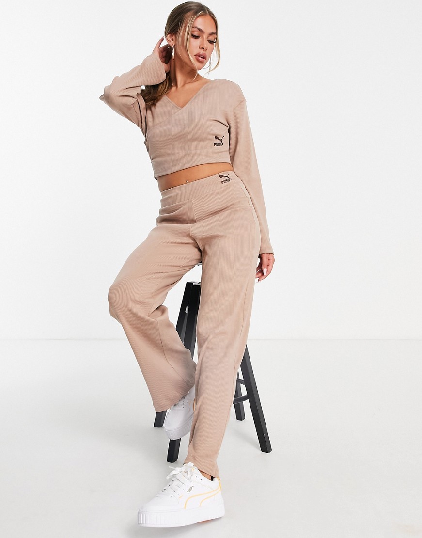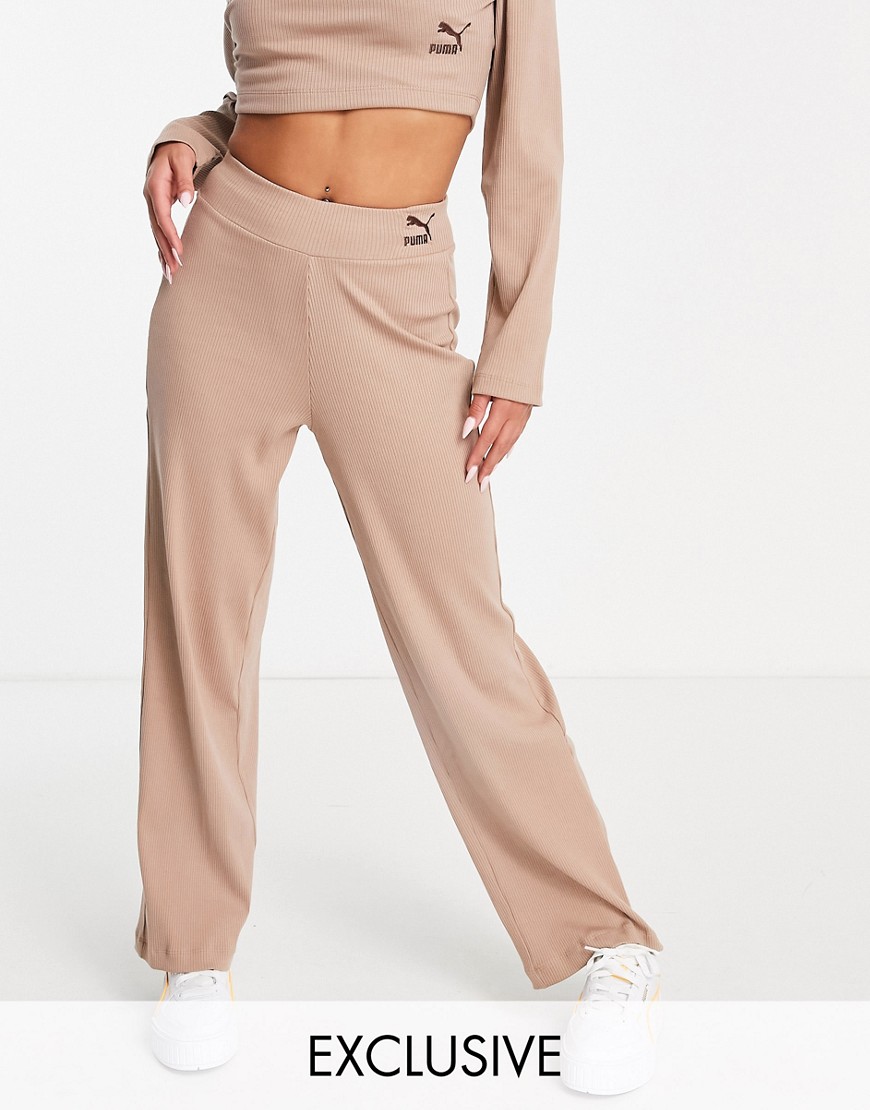 Puma brązowe prążkowane spodnie z szerokimi nogawkami S