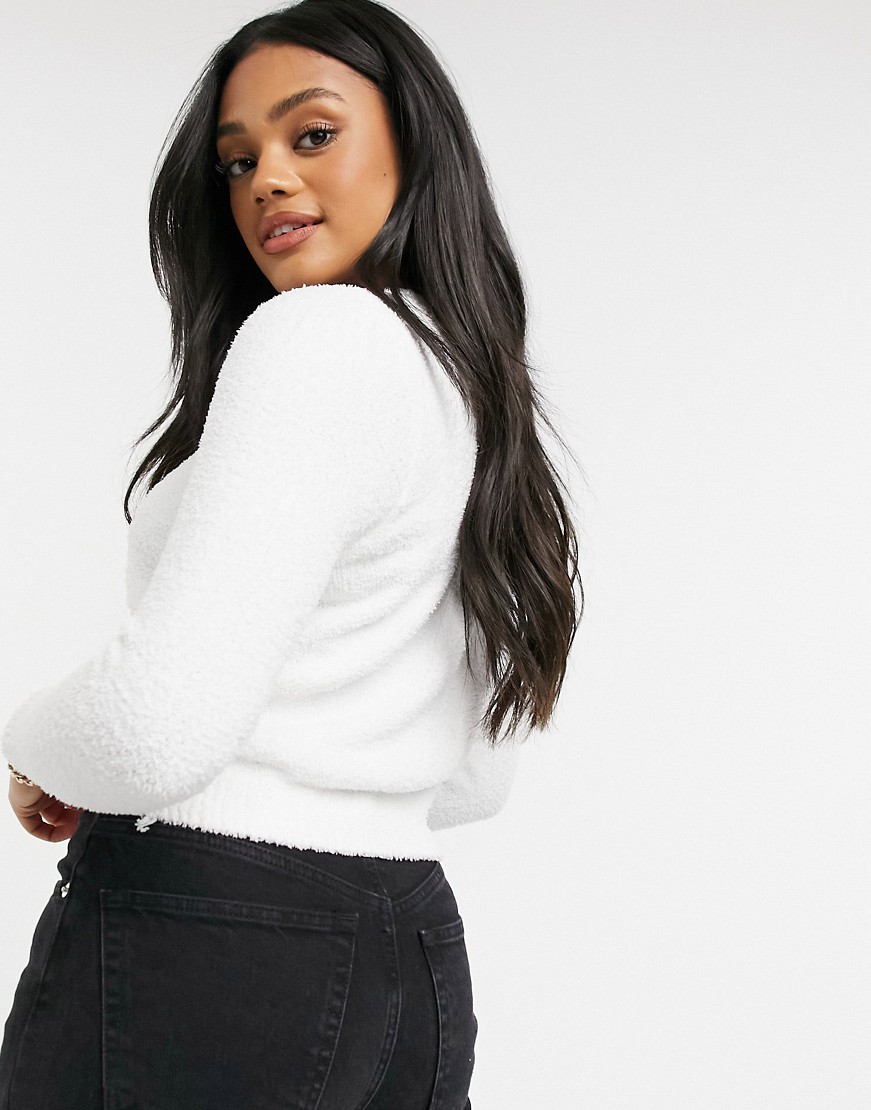 QED London biały sweter z miękkiego kożuszka L