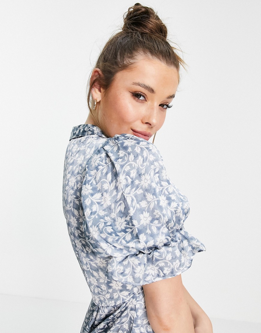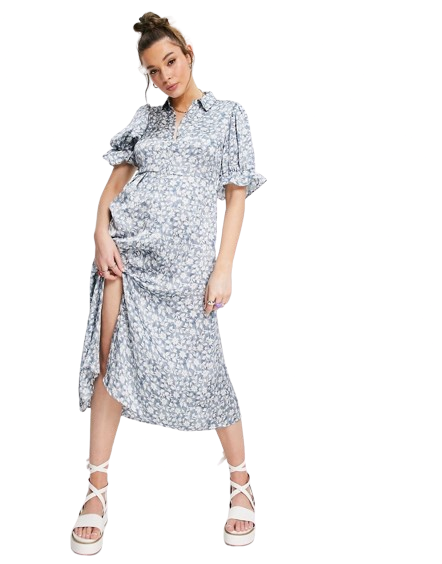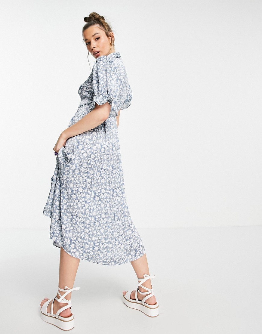 QED London niebieska sukienka midi w kwiaty 42
