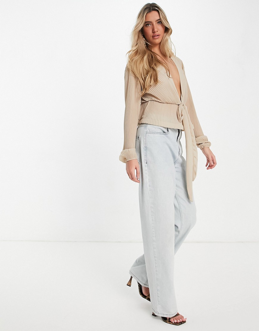 Rebellious Fashion beżowa plisowana bluzka z długim rękawem 44