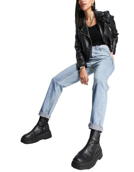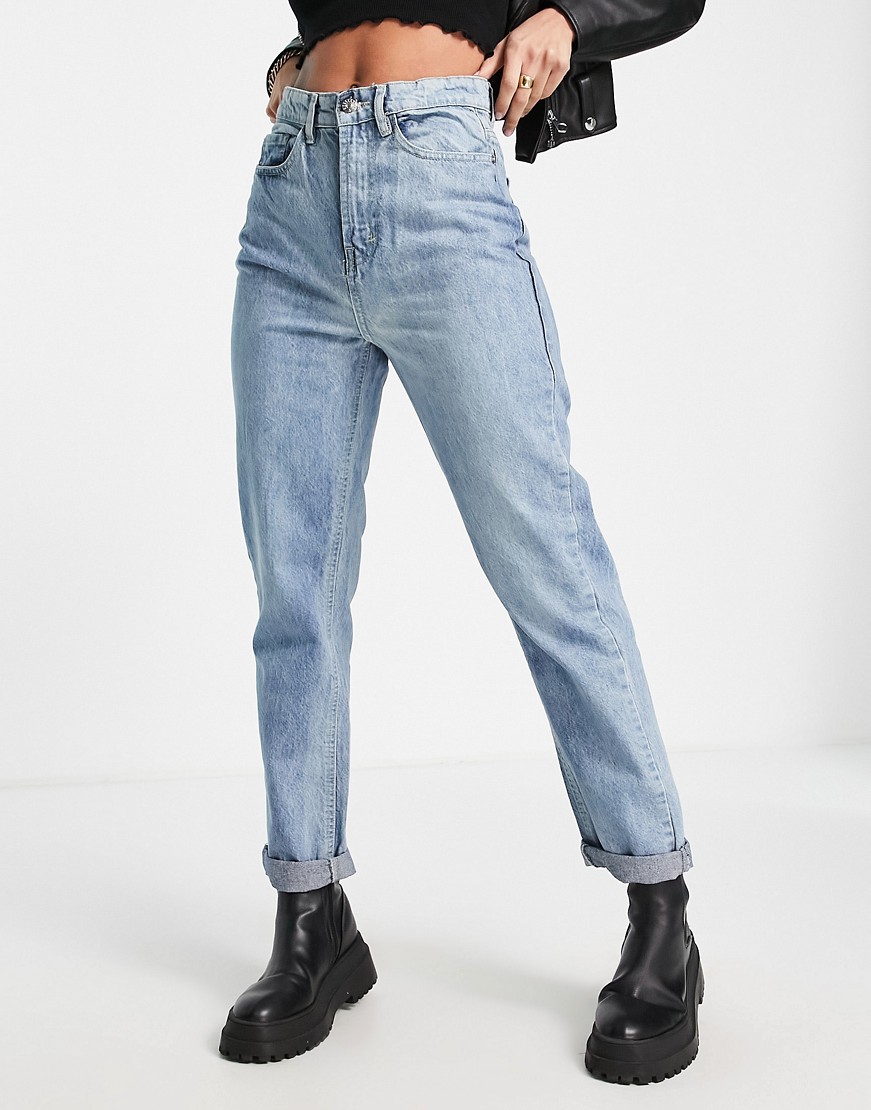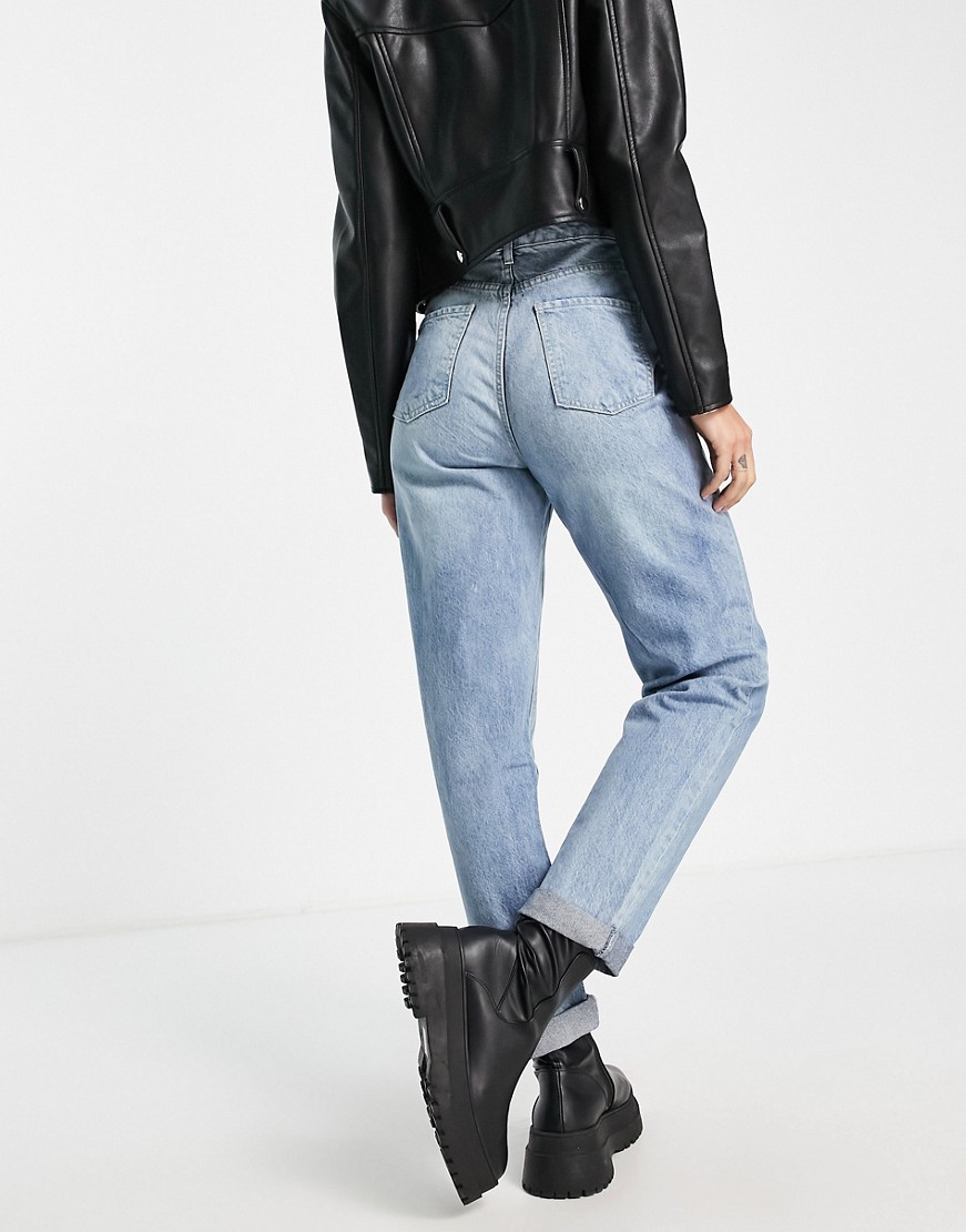 Rebellious Fashion Niebieskie jeansy mom fit z podwijanymi nogawkami defekt 42