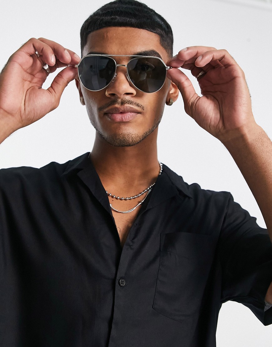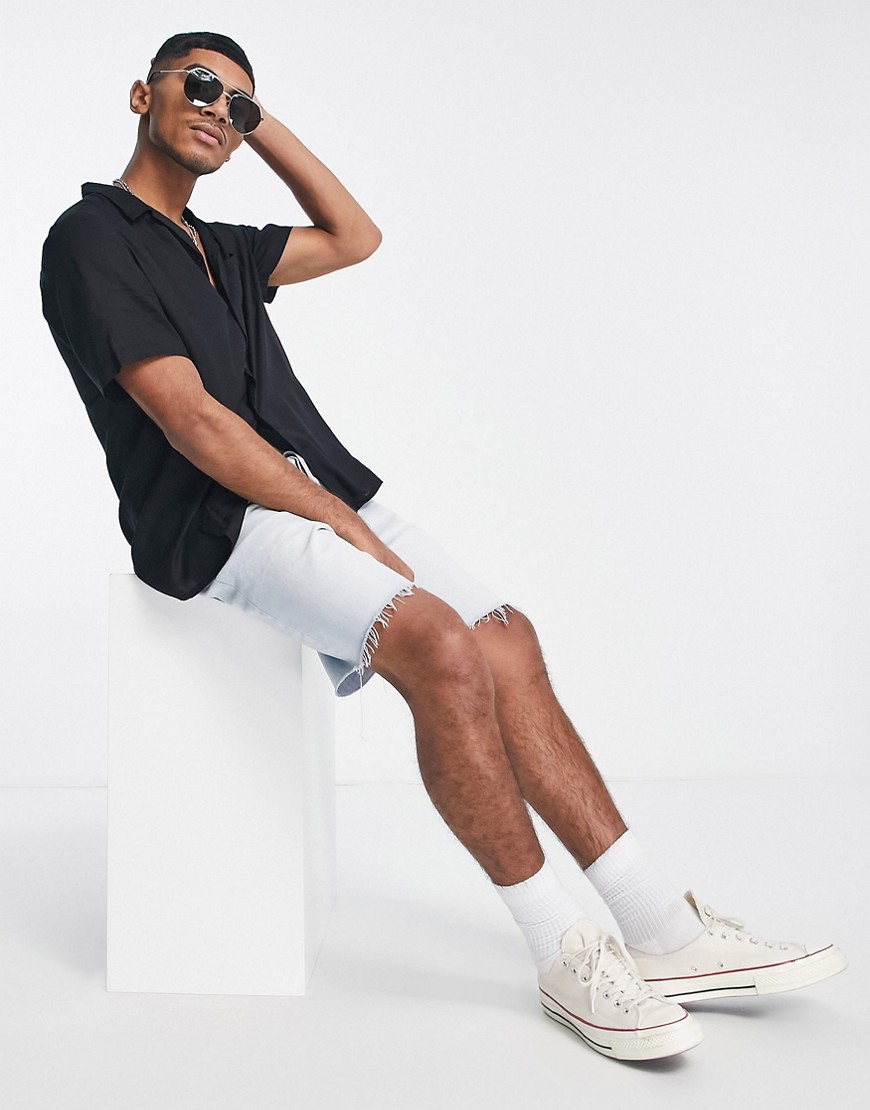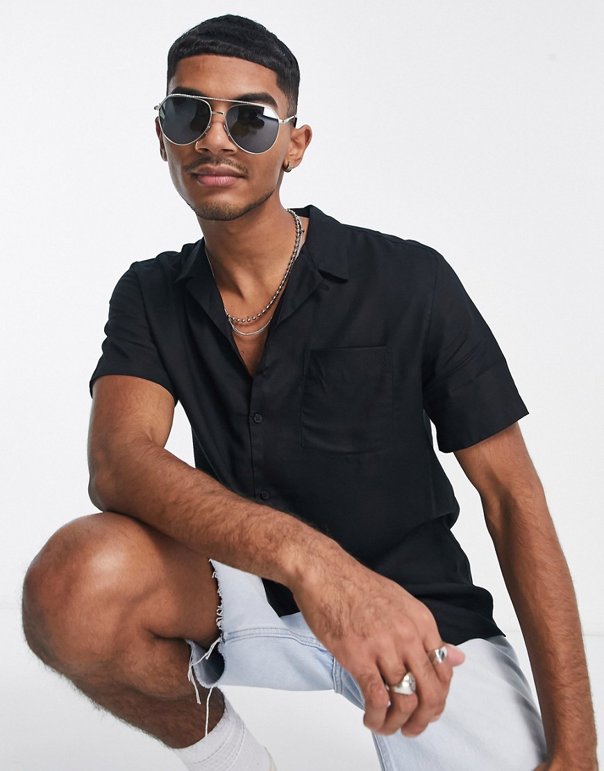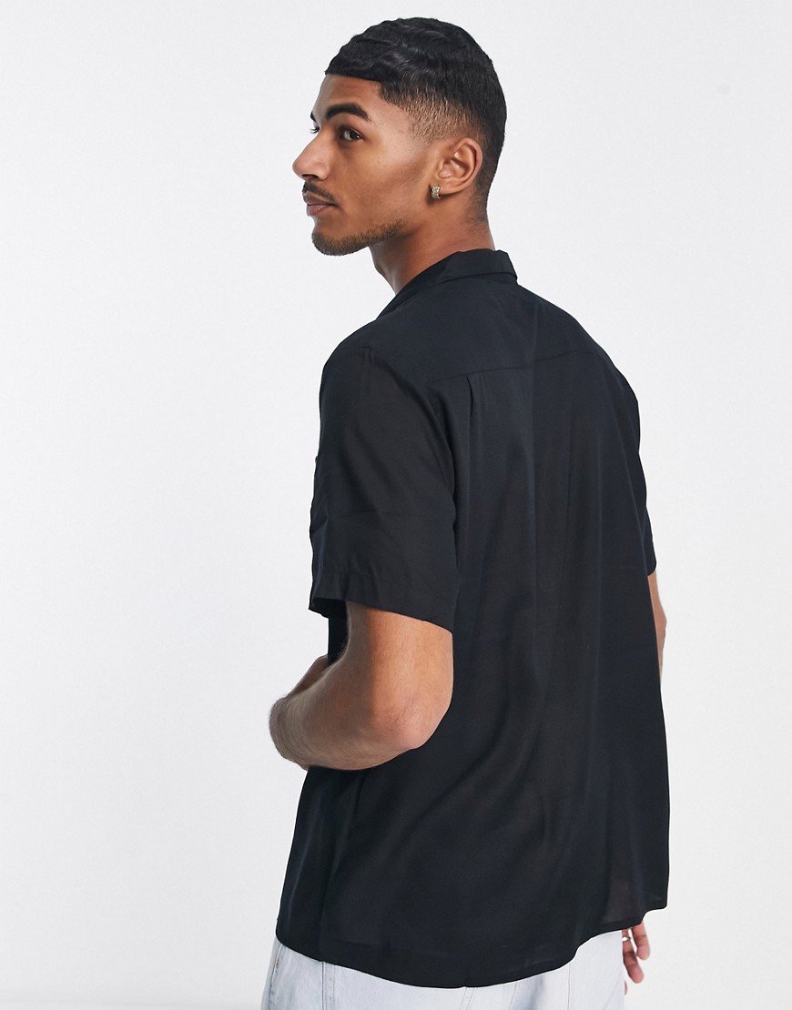 Reclaimed Vintage czarna koszula z wiskozy z kołnierzykiem kubańskim S
