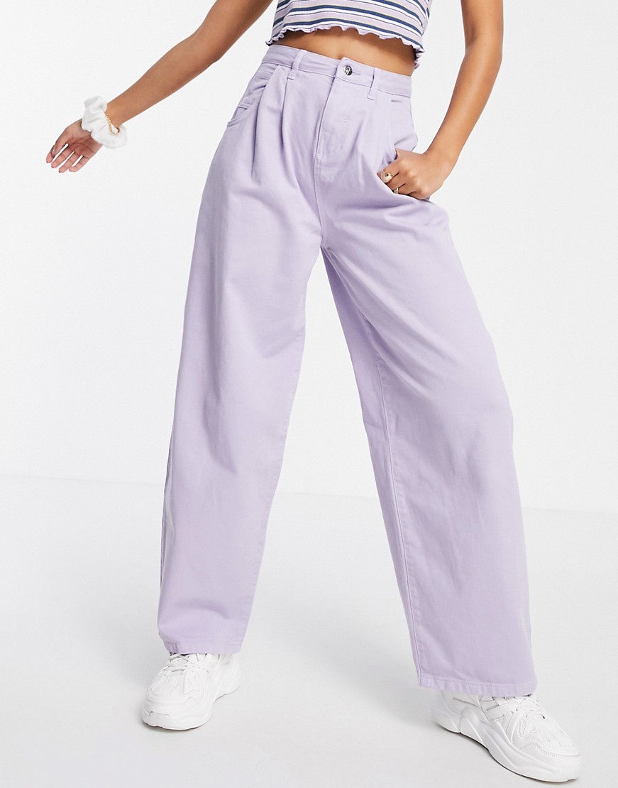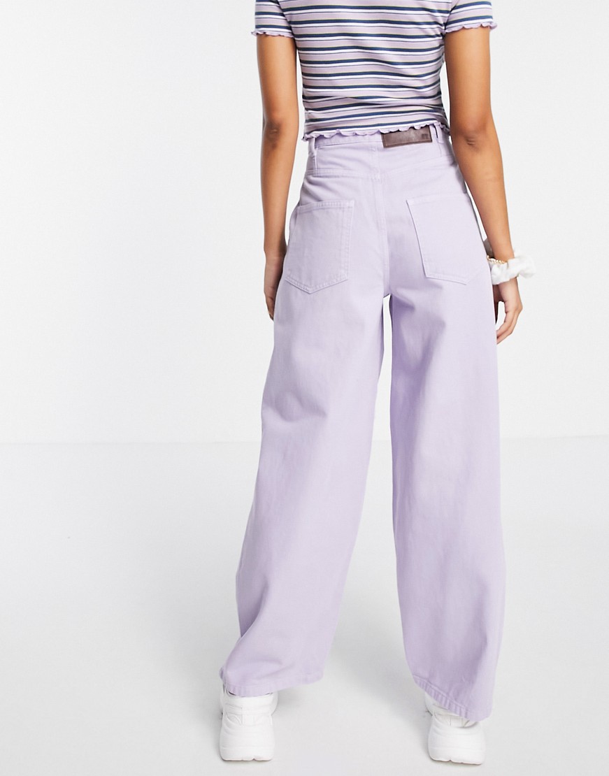 Reclaimed Vintage fioletowe pastelowe szerokie mom jeansy wide leg W36