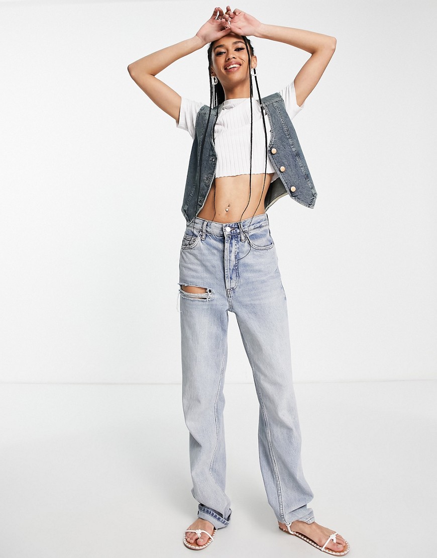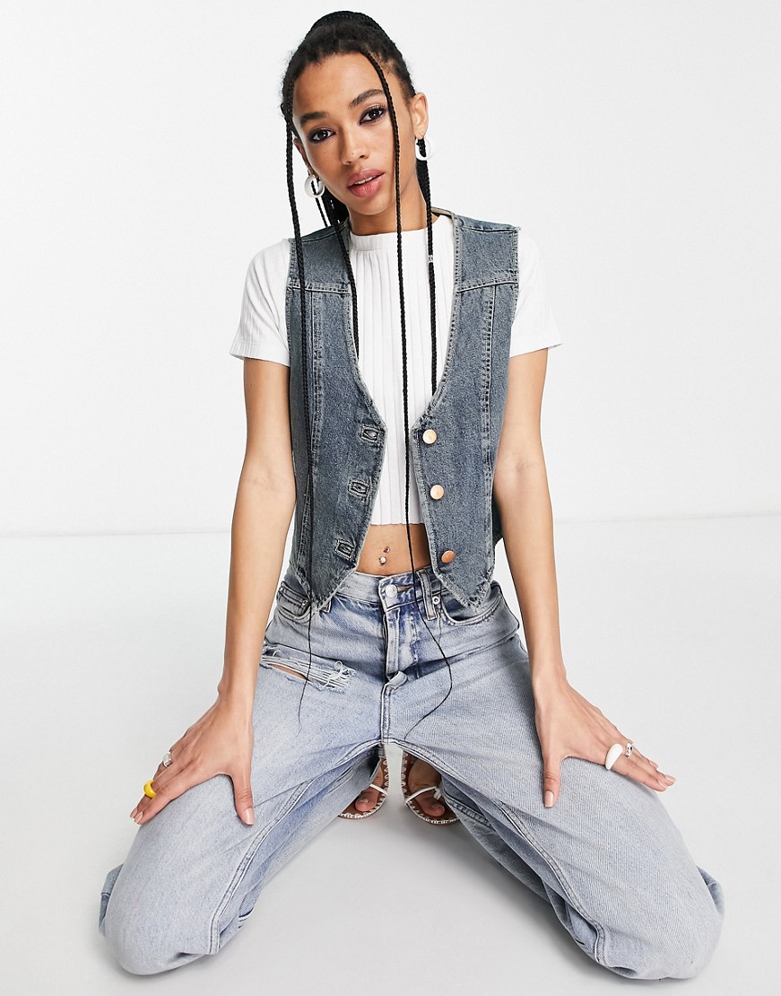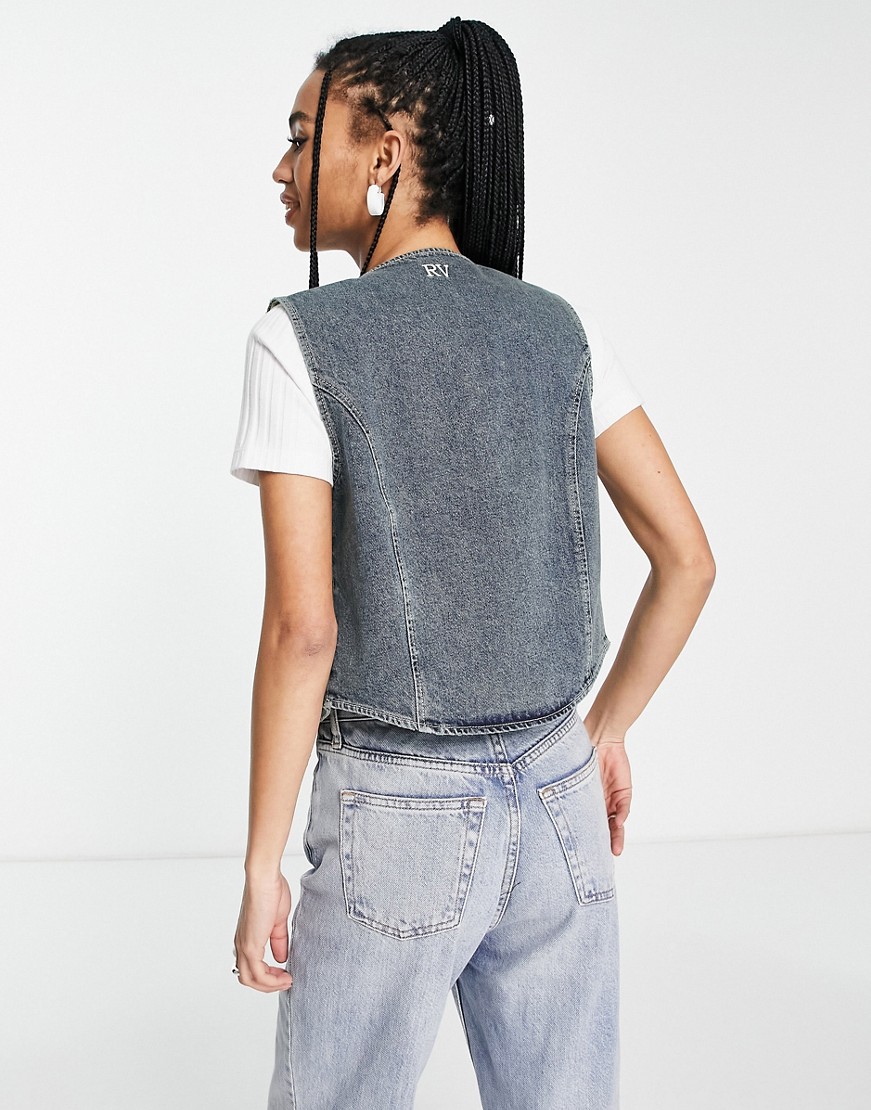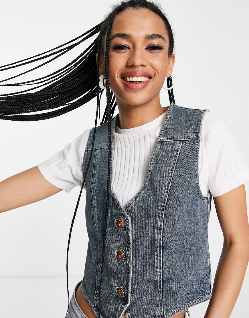 Reclaimed Vintage Inspired Niebieska jeansowa kamizelka z efektem sprania 36