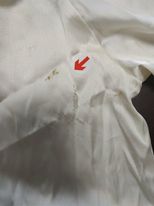 - defekt zabrudzenie i dziura z tyłu na rękawie