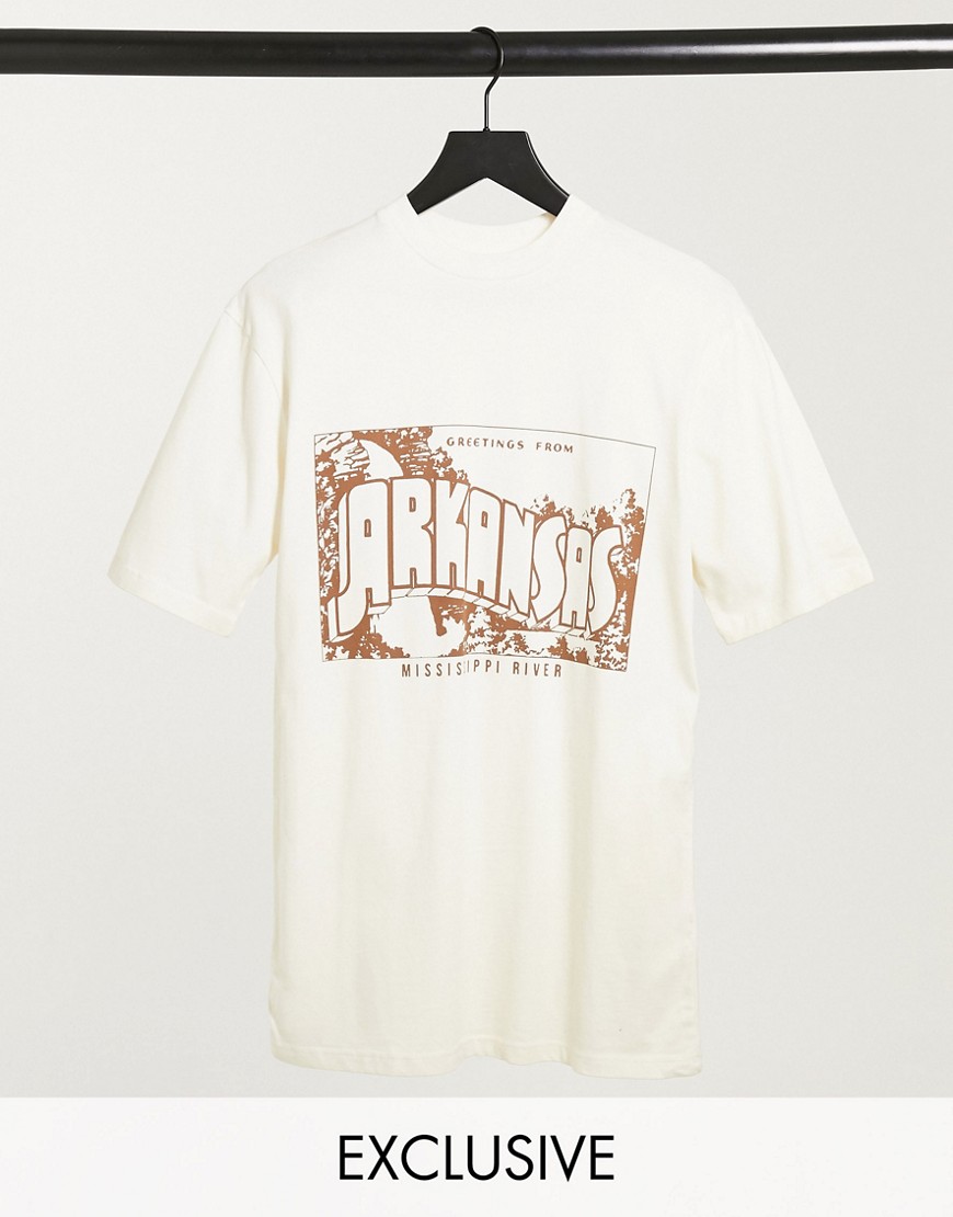 Reclaimed Vintage kremowyT-shirt unisex z nadrukiem „Arkansas” L