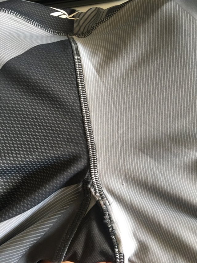 - Defekt: przerwanie szwu na tyłku – zdjęcia w galerii przedmiotu.