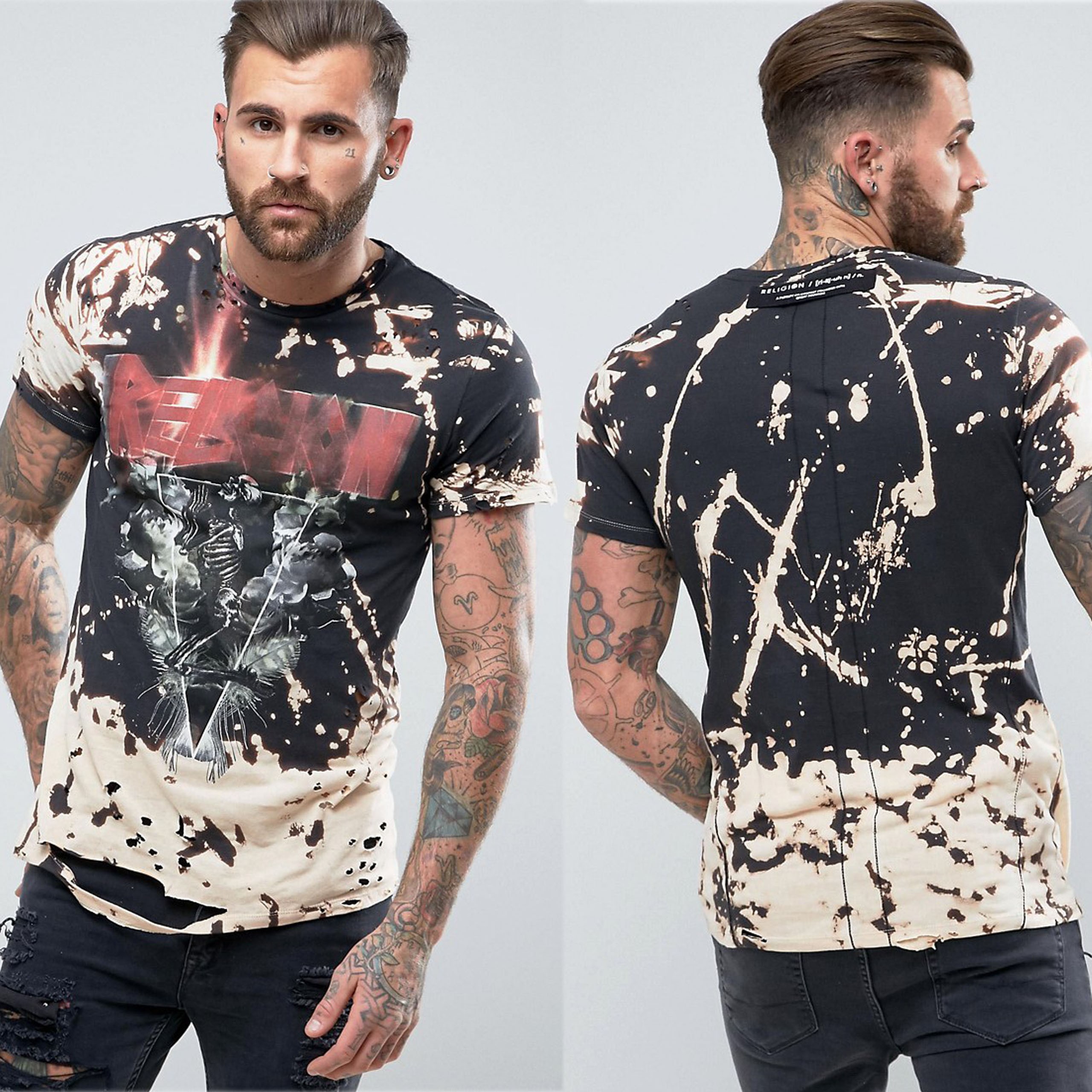 Religion czarny biały t-shirt z nadrukiem