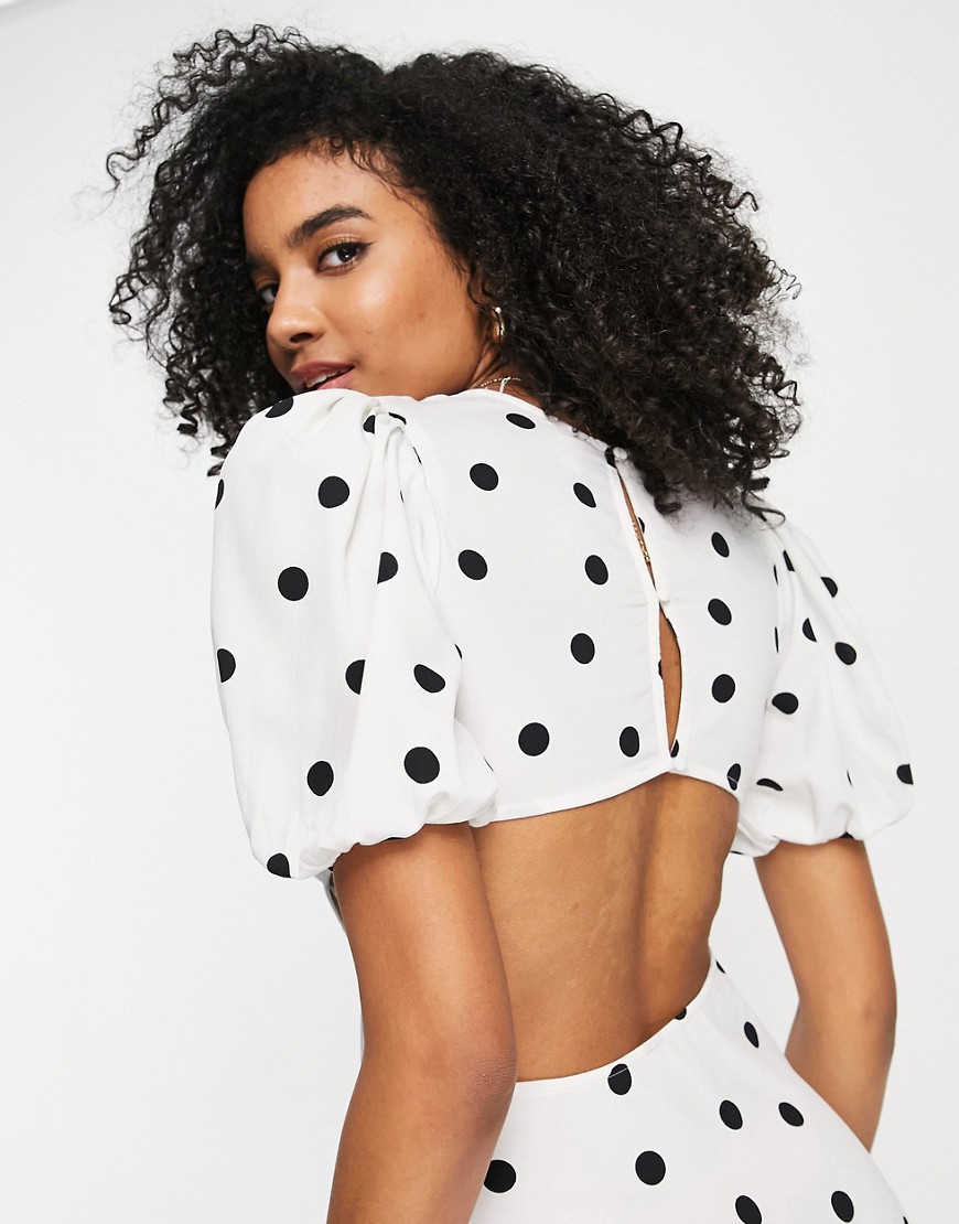 River Island biała sukienka mini w groszki z wycięciem 40