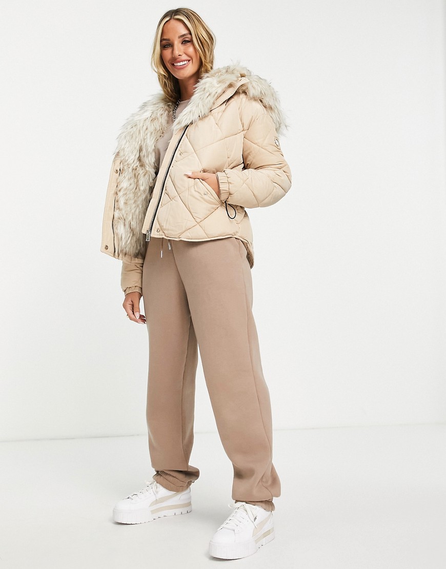 - Kaptur z wykończeniem ze sztucznego futra