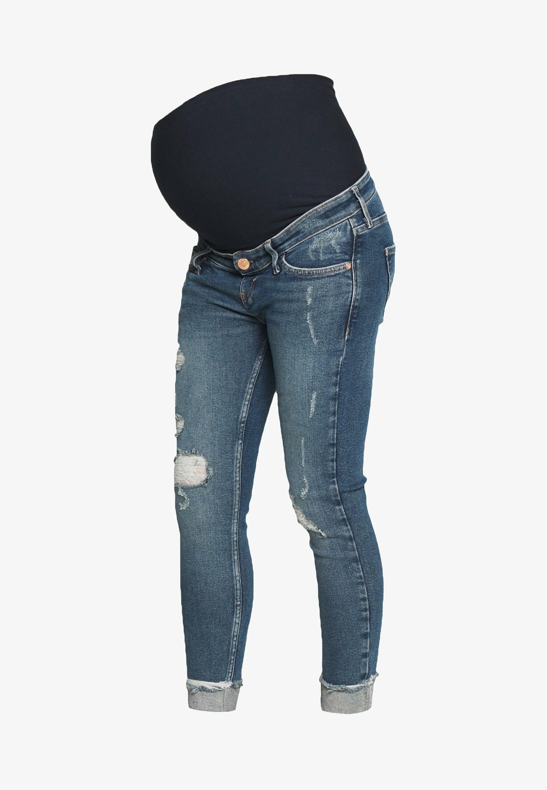 River Island niebieskie ciążowe spodnie jeansowe z gumką slim 36