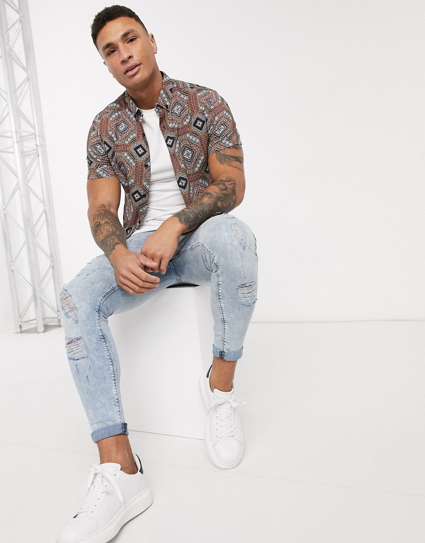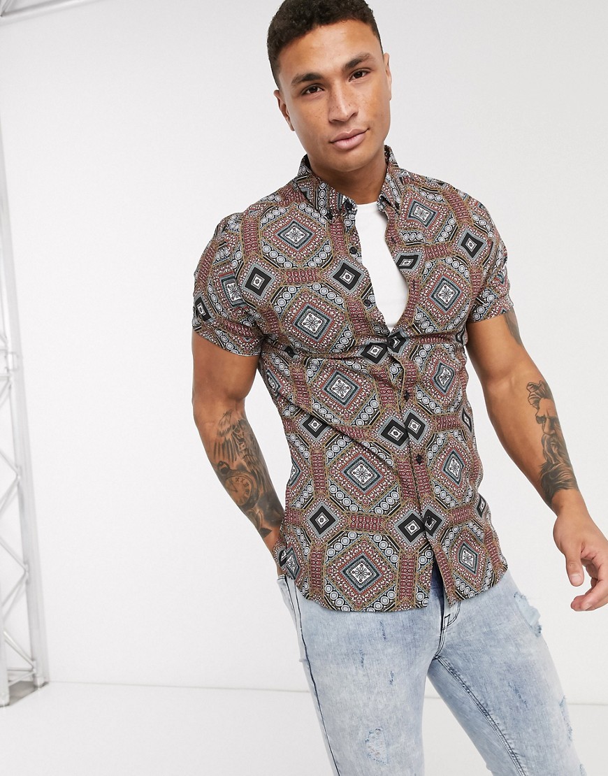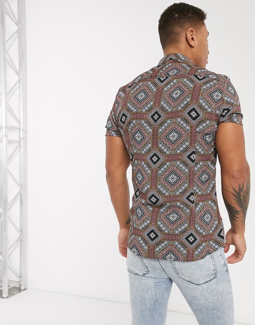 River Island wzorzysta Koszula męska krótki rękaw S