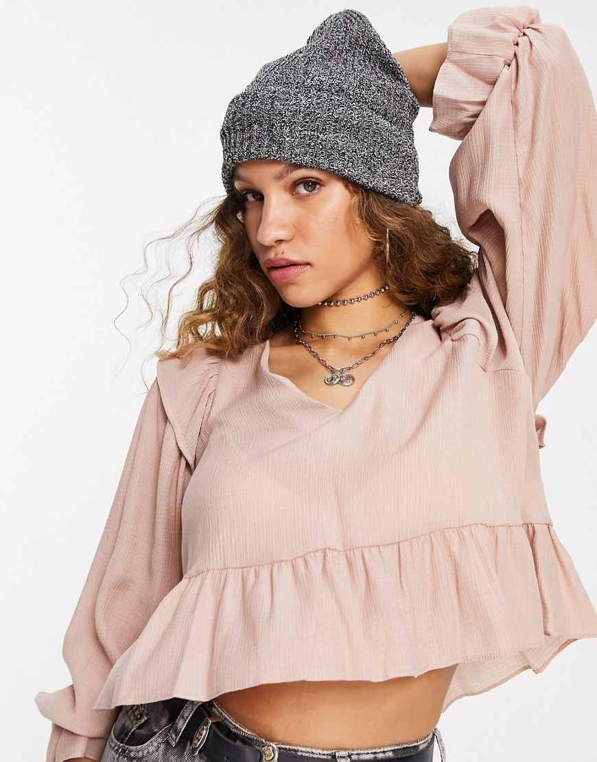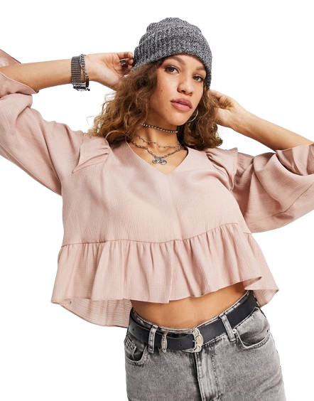 Różowa bluzka z baskinką dekolt V 36