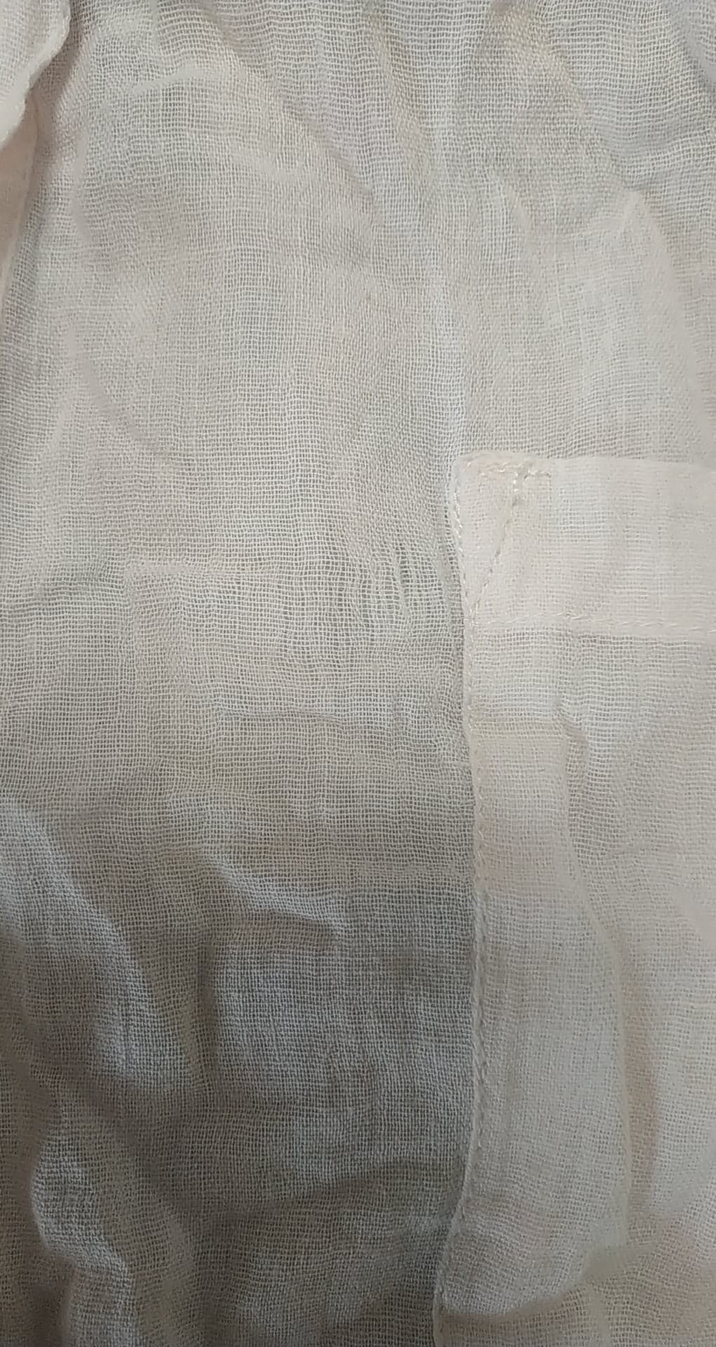 - defekt lekko rozciągnięty materiał przy kieszeni i wciągnięta nitka pod materiał na kołnierzu