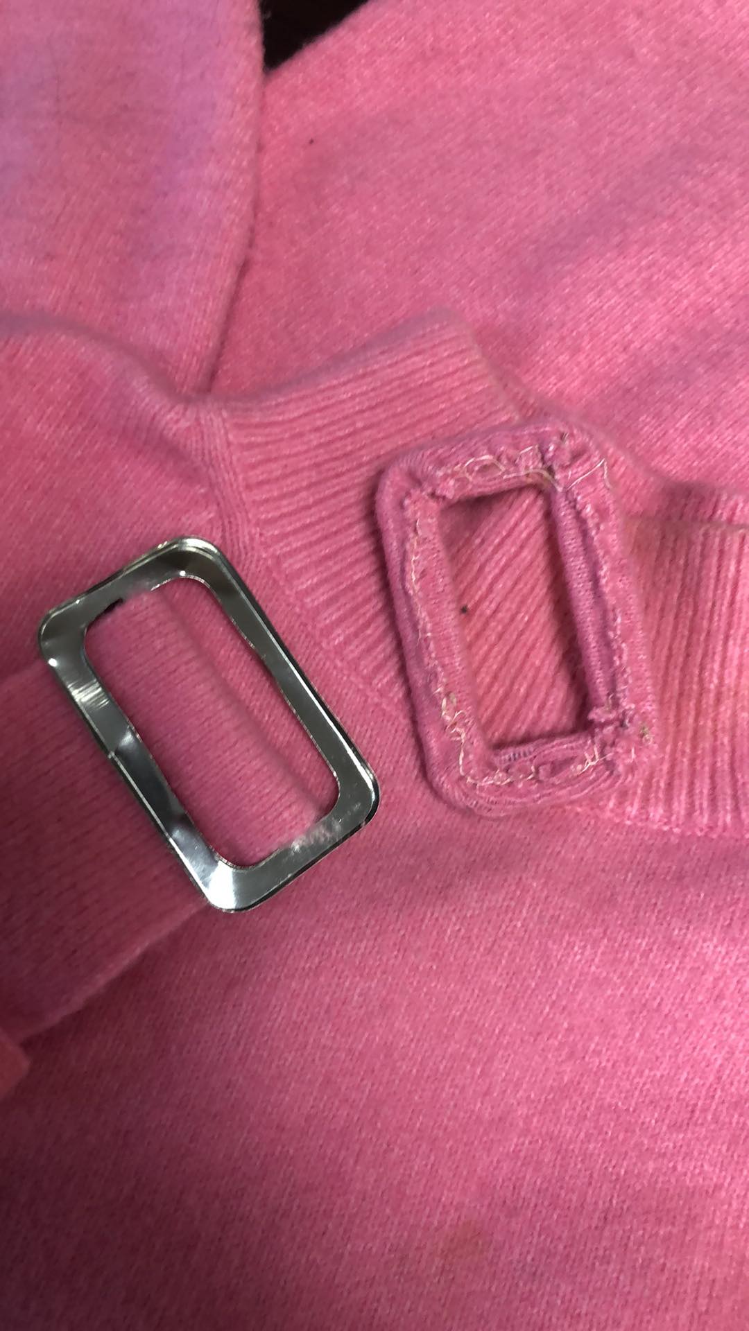 - Defekt zabrudzenie, zmechacony materiał oraz defekt paska, zdjęcie w galerii produktu