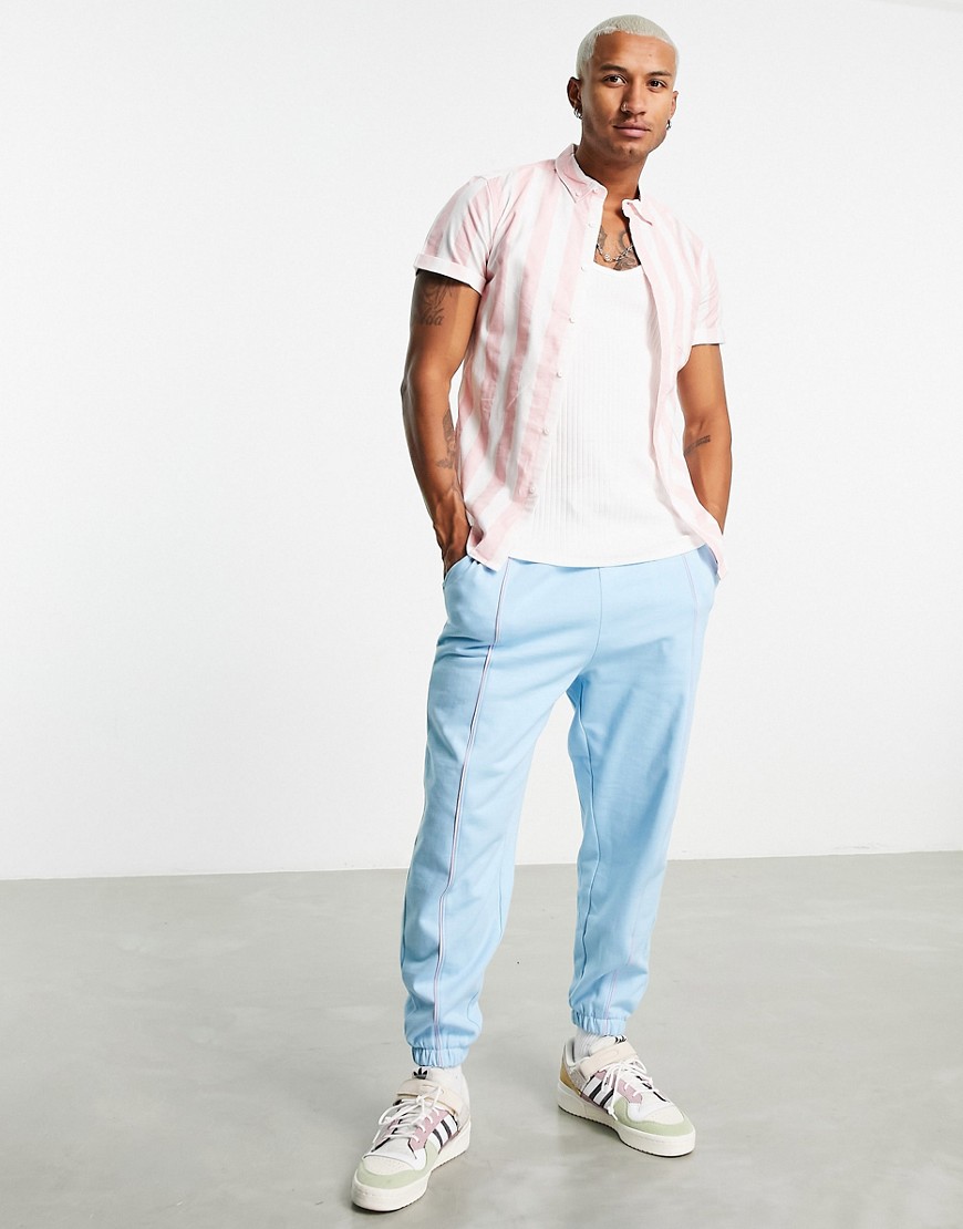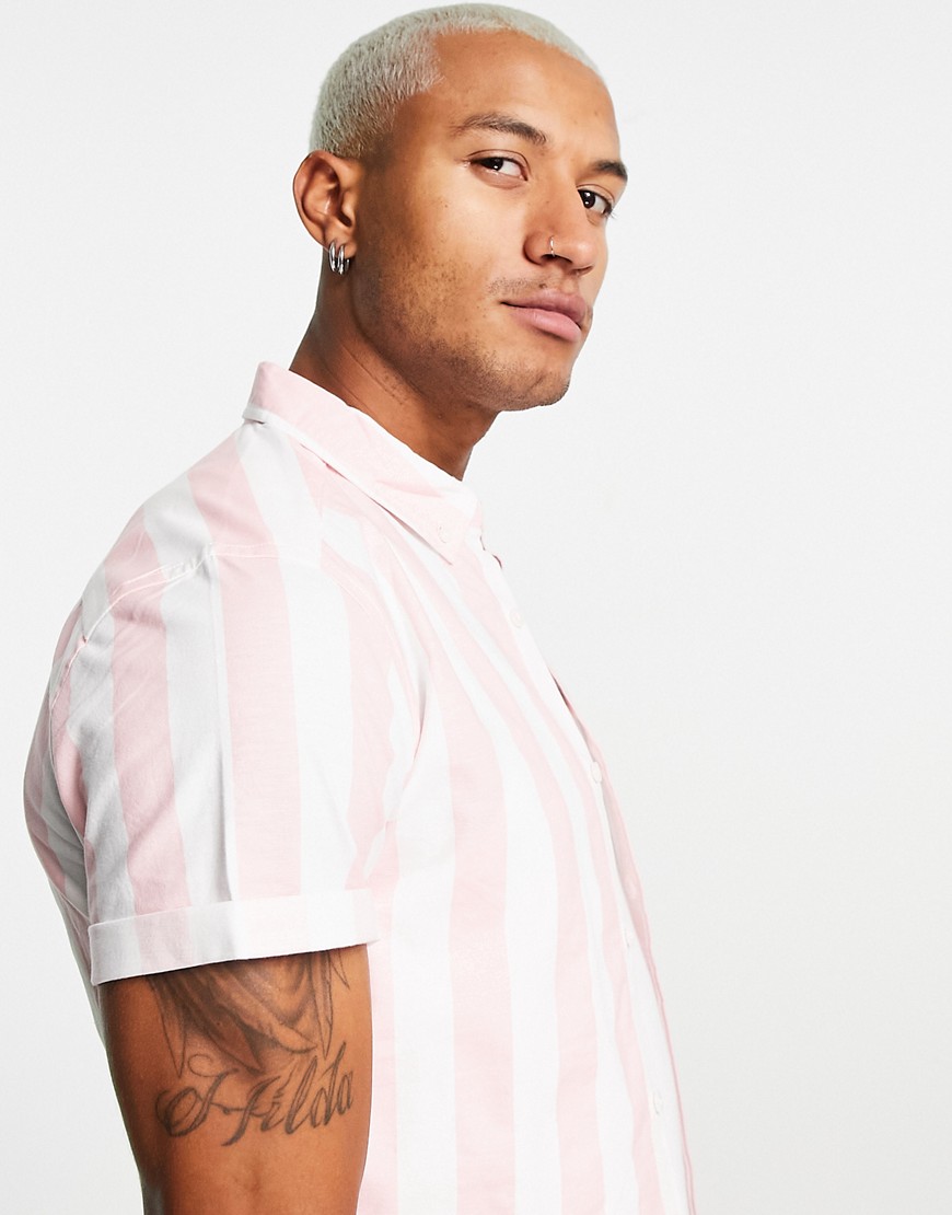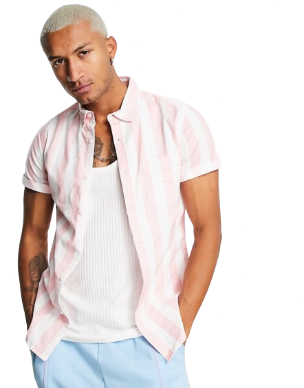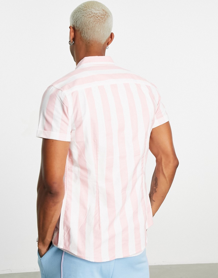 Różowa męska dopasowana koszula oxford w paski S