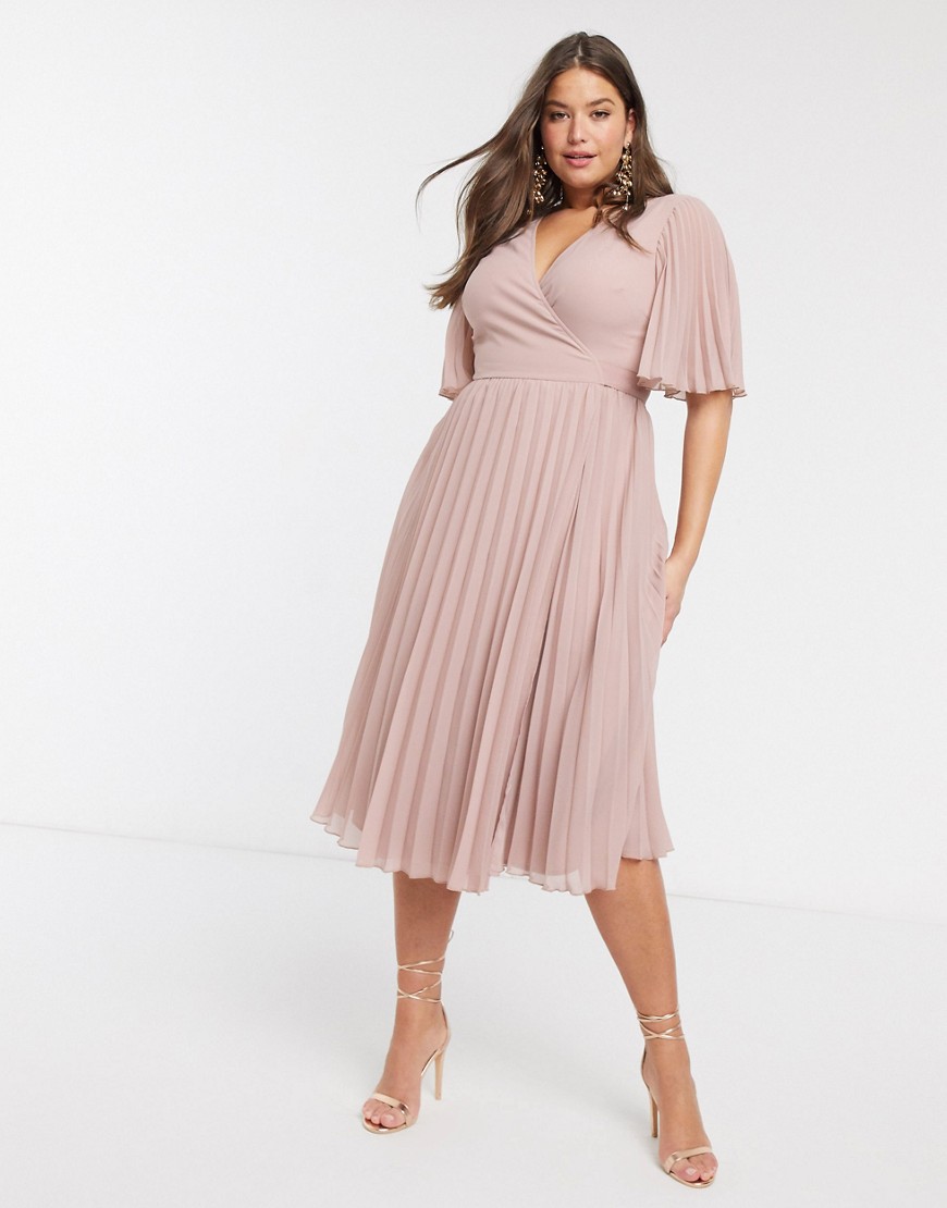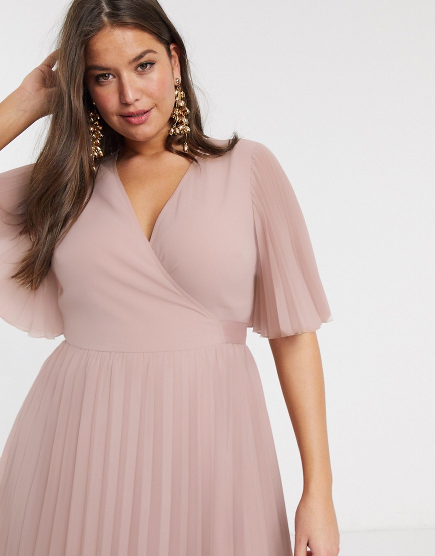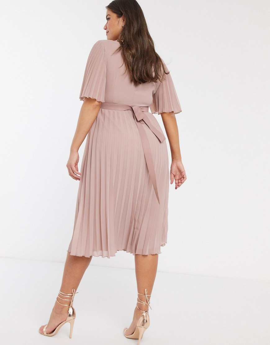 Różowa plisowana sukienka koktajlowa midi szyfonowa plus size 52