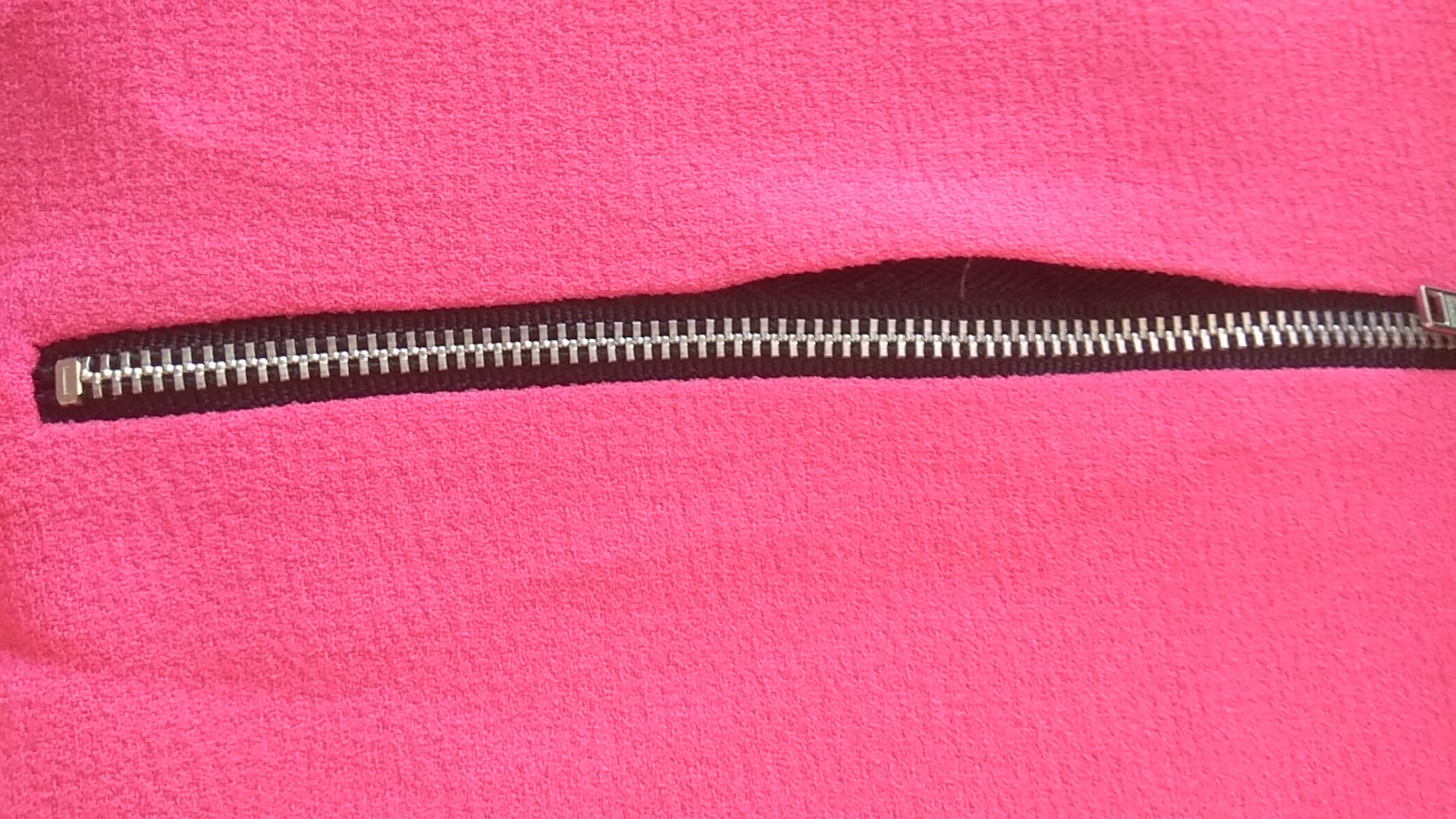 - DEFEKT – pęknięcie przy zamku na szwie, zabrudzenie od długopisu z przodu po lewej stronie (zdjęcie)
