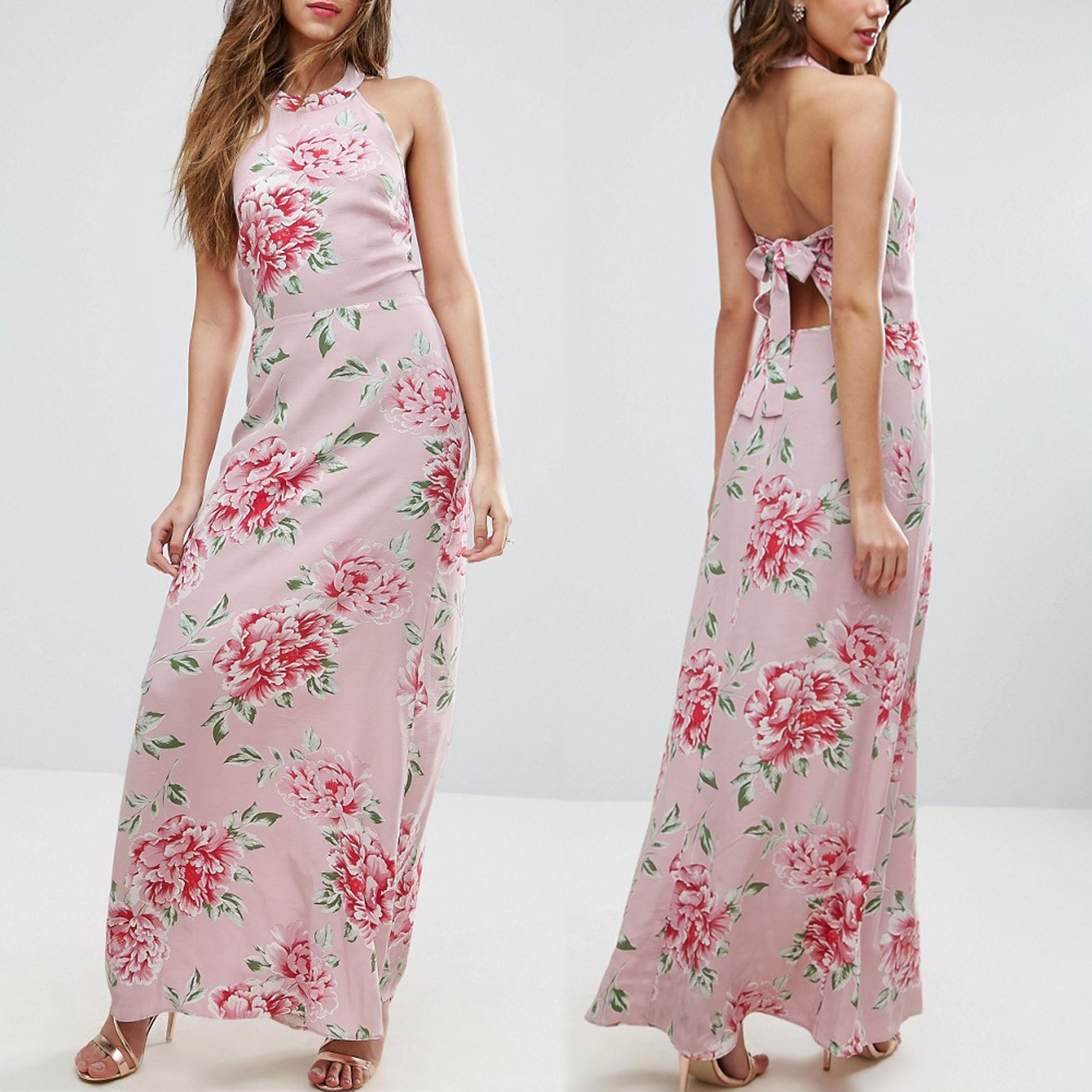 ASOS różowa sukienka na lato maxi w kwiaty