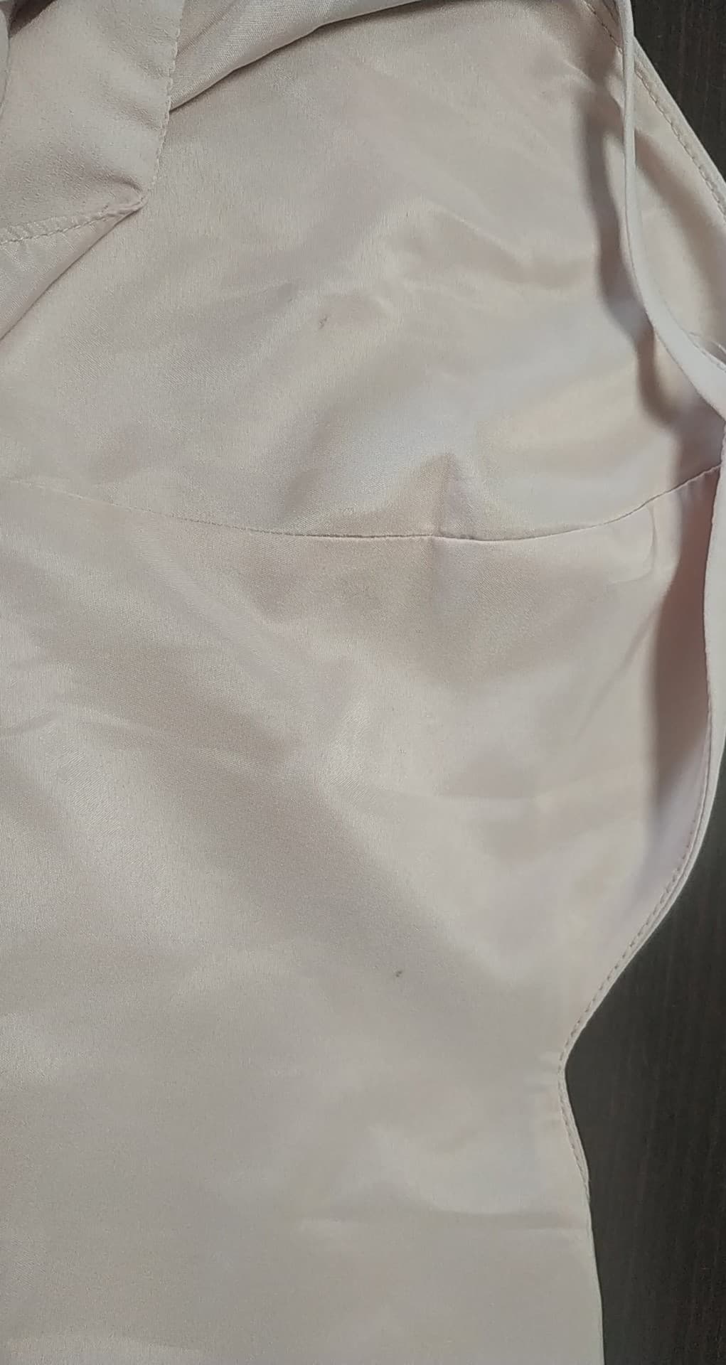 - Defekt drobne plamki po wewnętrznej stronie dekoltu – niewidoczne podczas noszenia, zdjęcie w galerii produktu