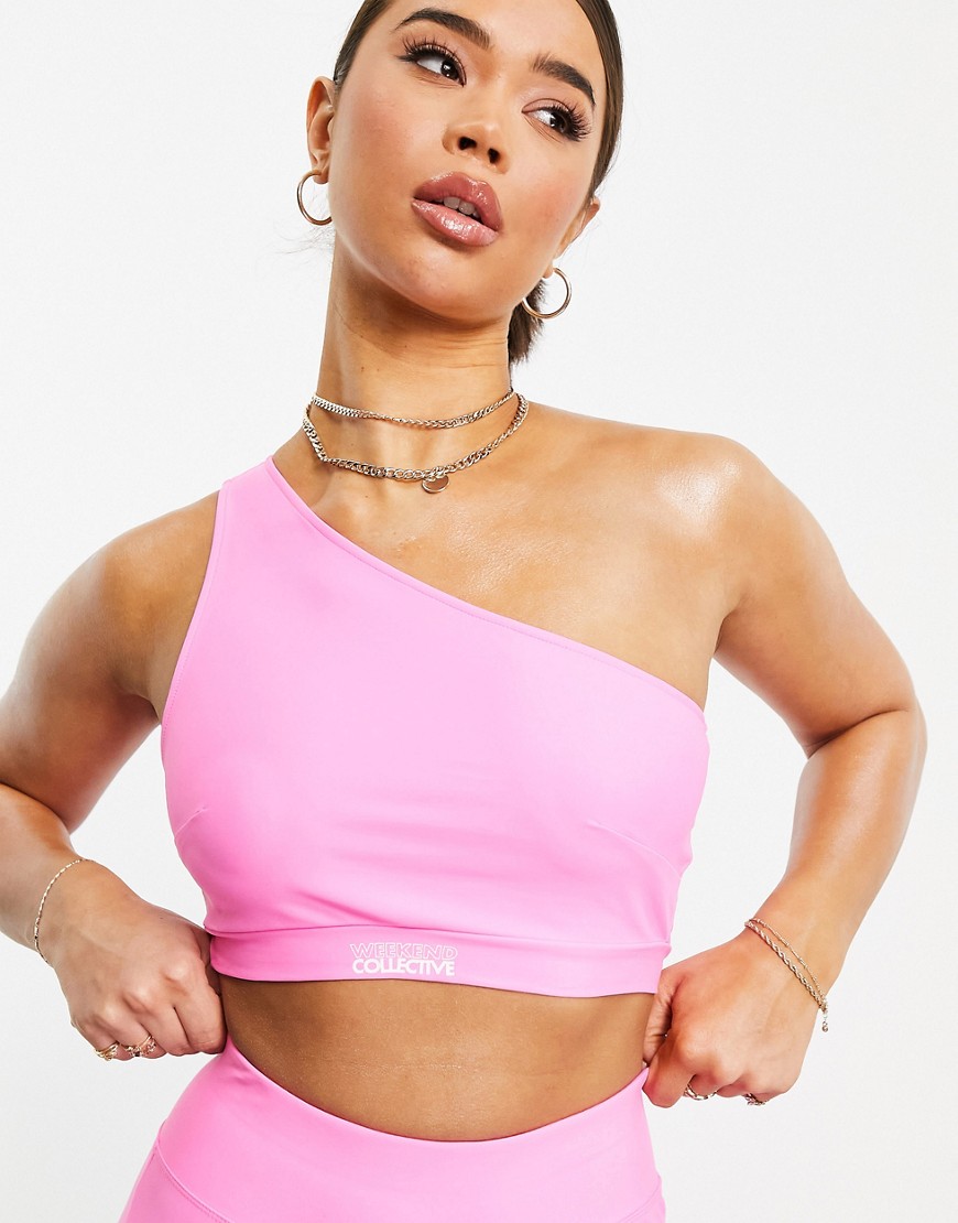 Różowy elastyczny top na jedno ramię 34